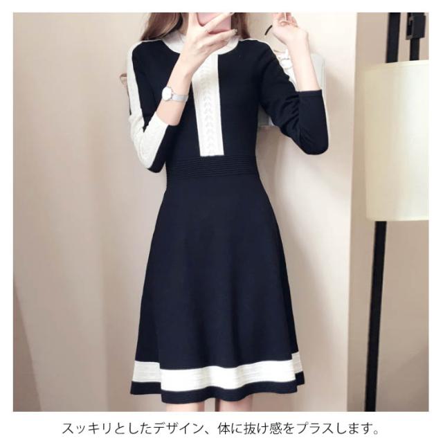 ワンピース ニットワンピース レディース 長袖 薄手 秋物 膝丈 セーター 春物 ミディアム丈 オフィス 通勤 着痩せ 新作 カジュアル送料無料
