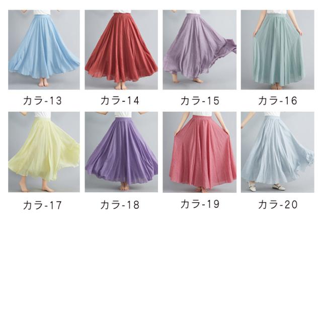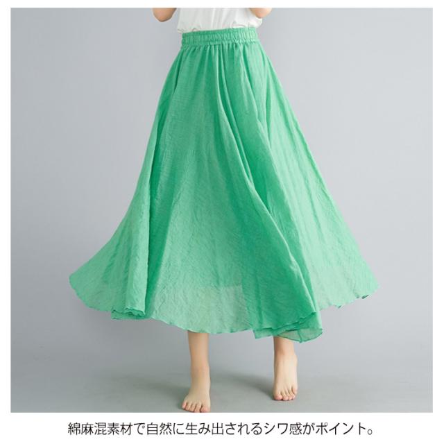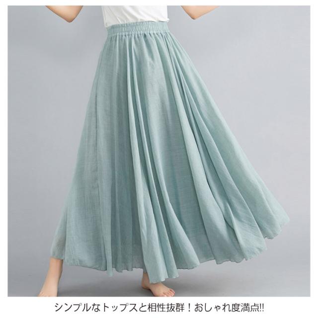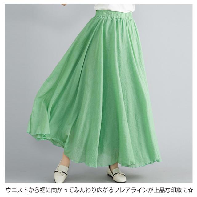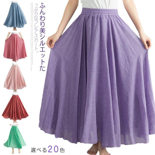 【20色展開】フレアスカート ロングスカート リネン マキシスカート スカート ロング丈 レディース 麻綿 リネン 着痩せ 体型カバー Aライン ワイドスカート ウエストゴム送料無料