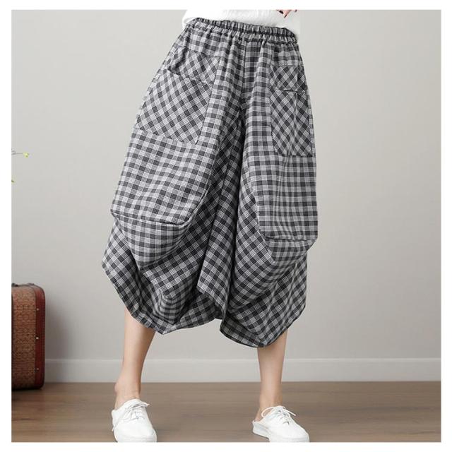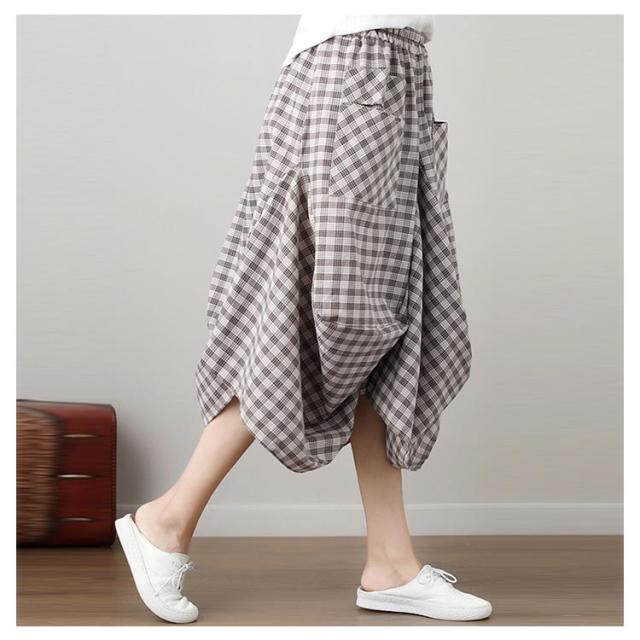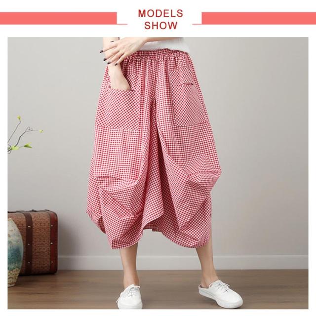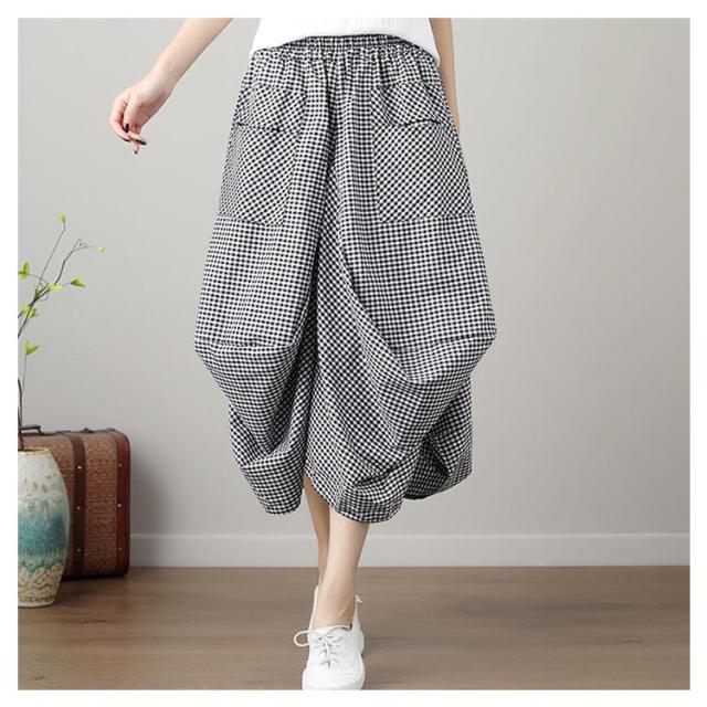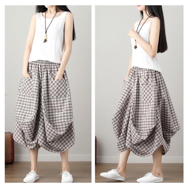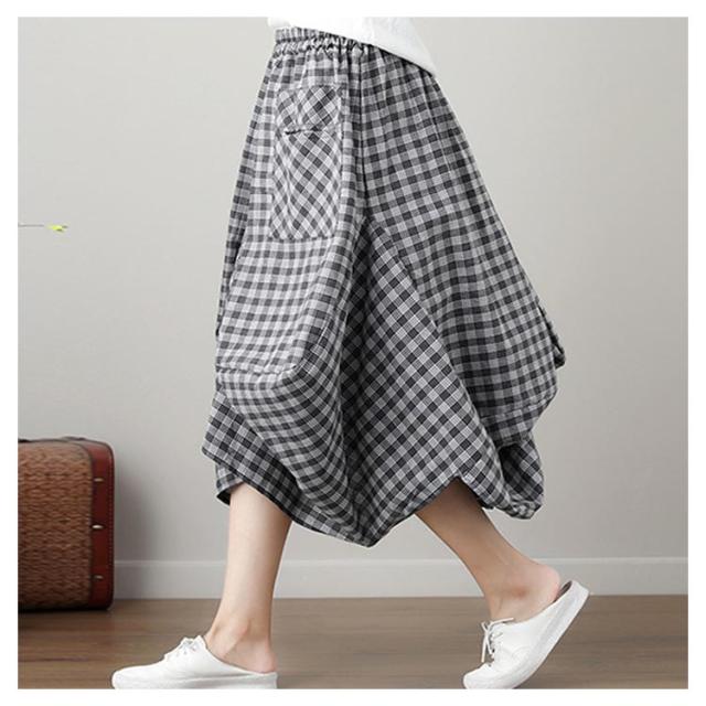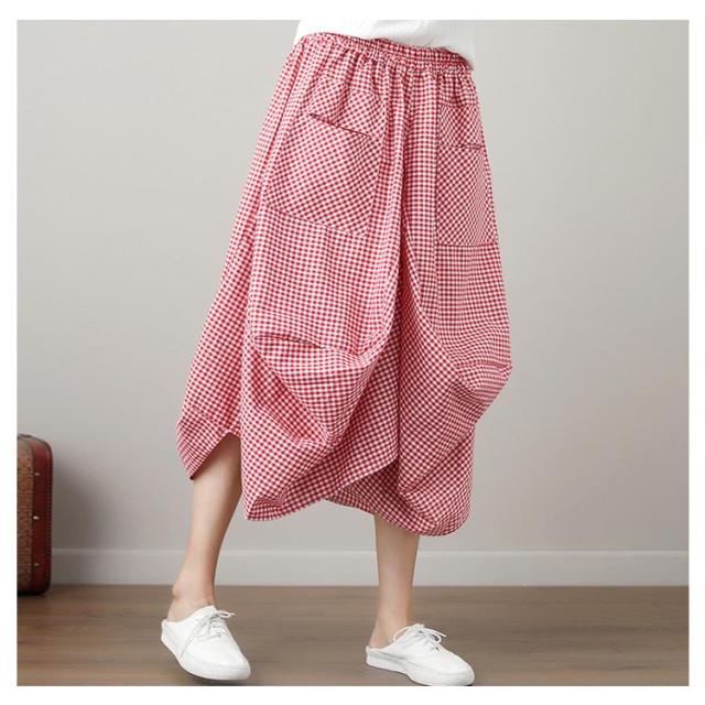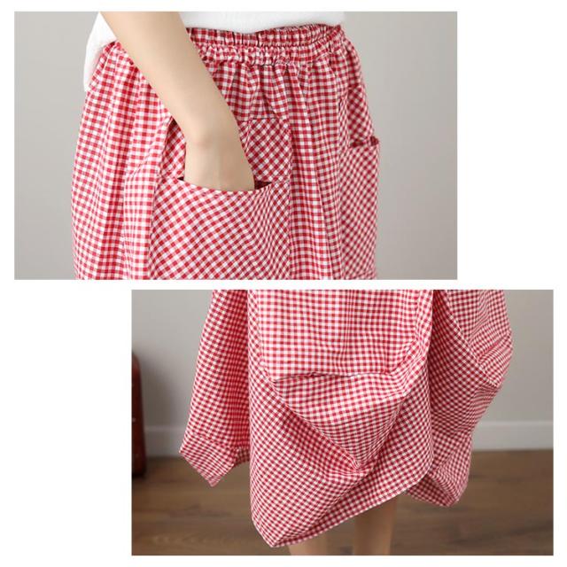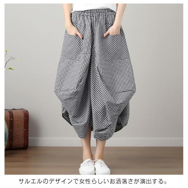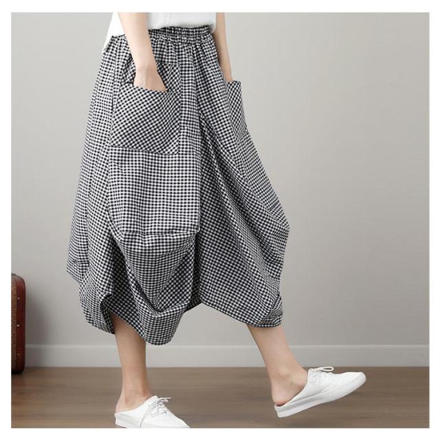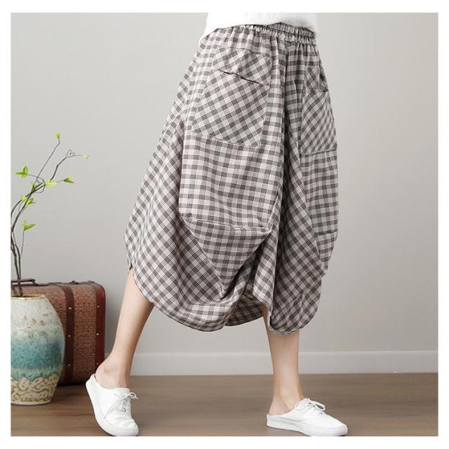 ロングスカート チェック柄 レディース スカート 麻綿 ナチュラル 体型カバー ワイドスカート ボトムス マキシ丈 ゆったり カジュアル お洒落 ウエストゴム送料無料