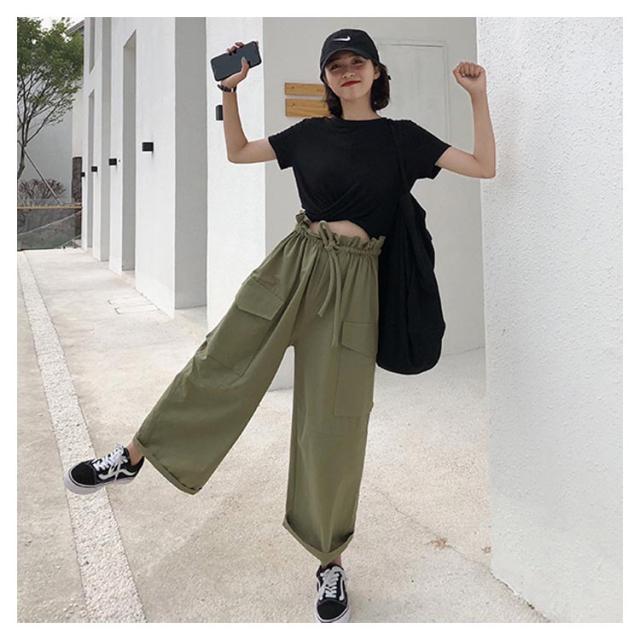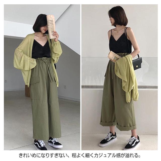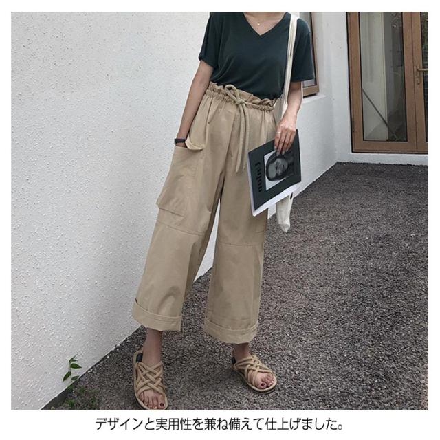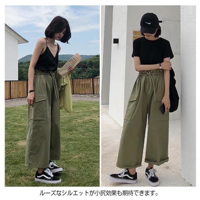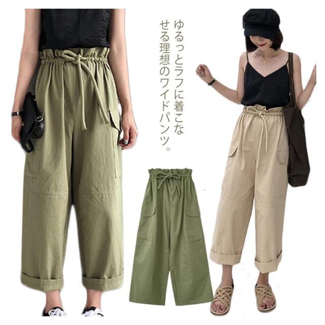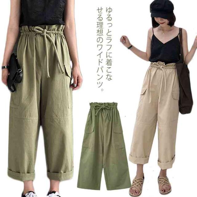 ワイドパンツ カーゴパンツ 大きいサイズ チノパン ガウチョパンツ ボトムス レディース ロング丈 ウエストゴム お洒落 無地 春夏秋送料無料