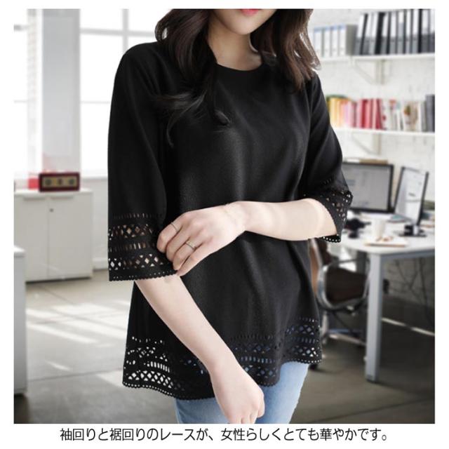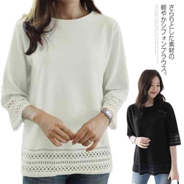シャツ 5分袖 シフォンシャツ 夏トップス レディース シフォン 大きいサイズ フェミニン感 レースシャツ お洒落 ブラック ホワイト送料無料