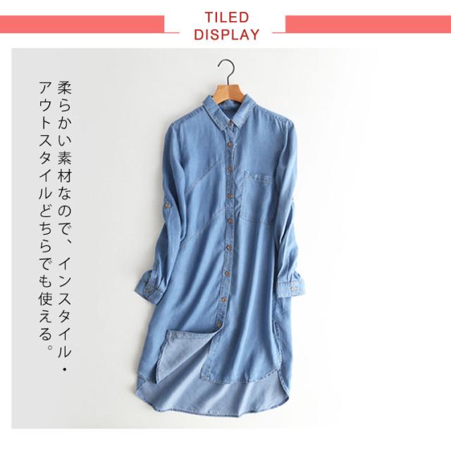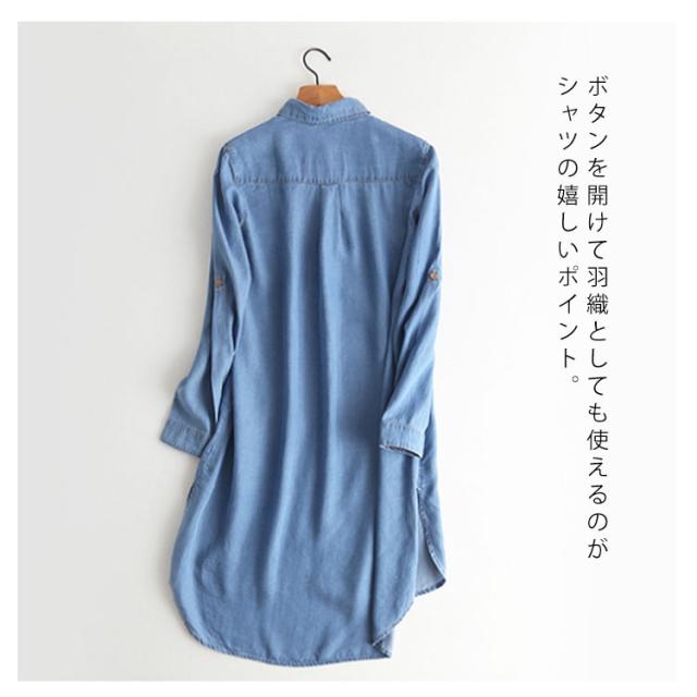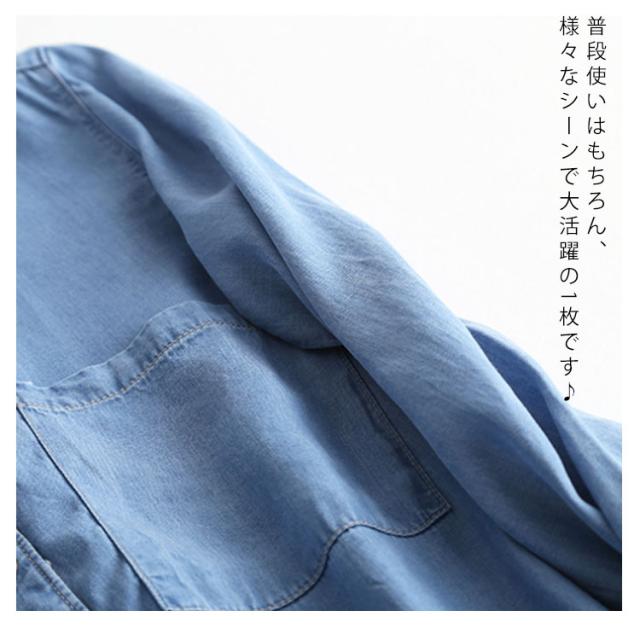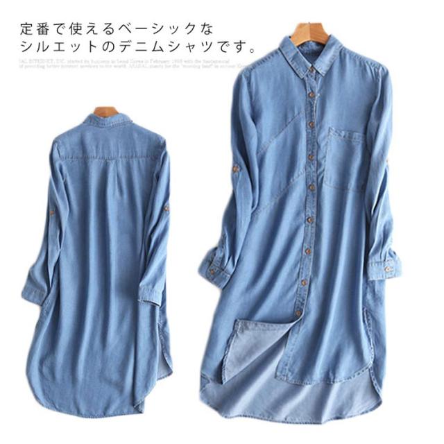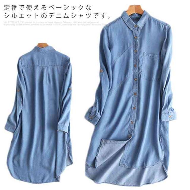 デニムシャツ 長袖 トップス シャツ デニム 薄手 レディース アウター 羽織り ロング丈 春物 秋物 お洒落 新作 リラックス カジュアル送料無料