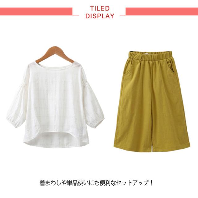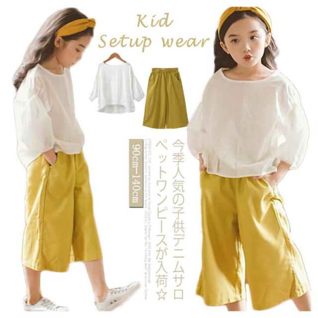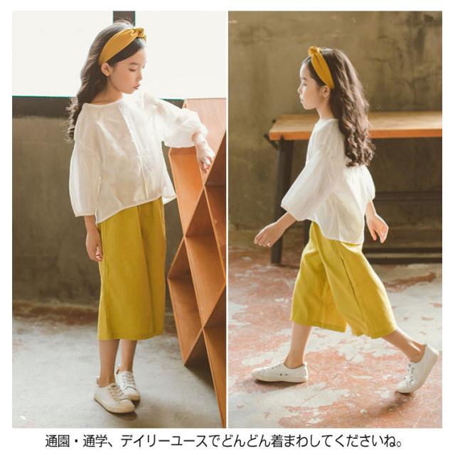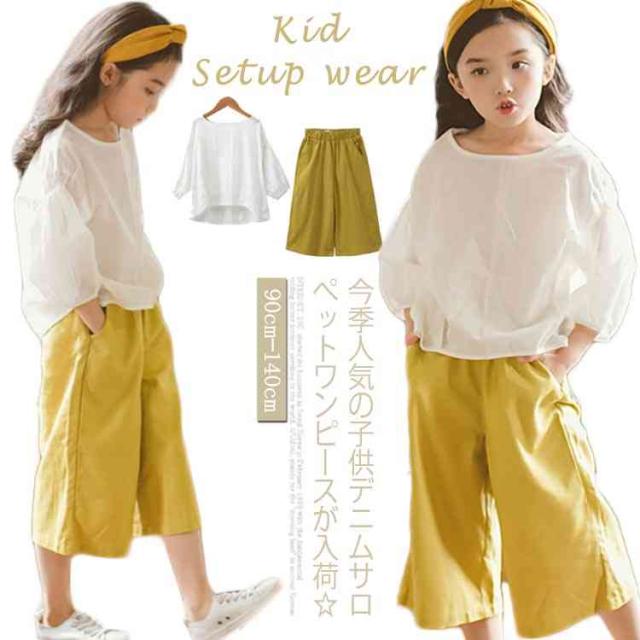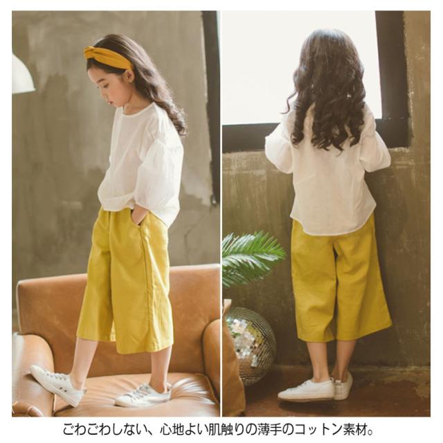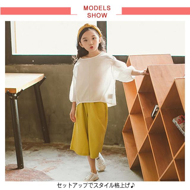 女の子 2点セット 上下セット セットアップ 7分袖 ブラウス&ワイドパンツ 上下セット レジャー 子供服 キッズ プルオーバー 子供 ブラウス ワイドパンツ 7分丈 パンツ