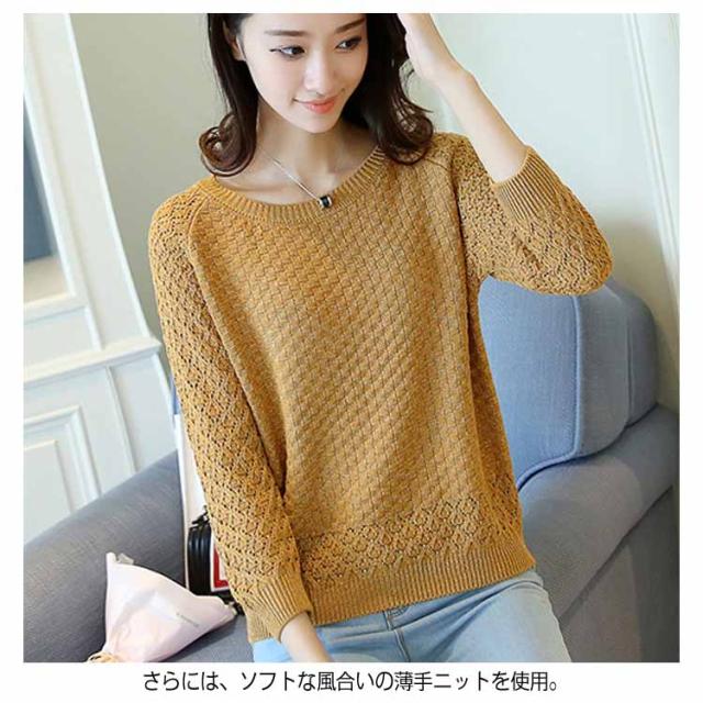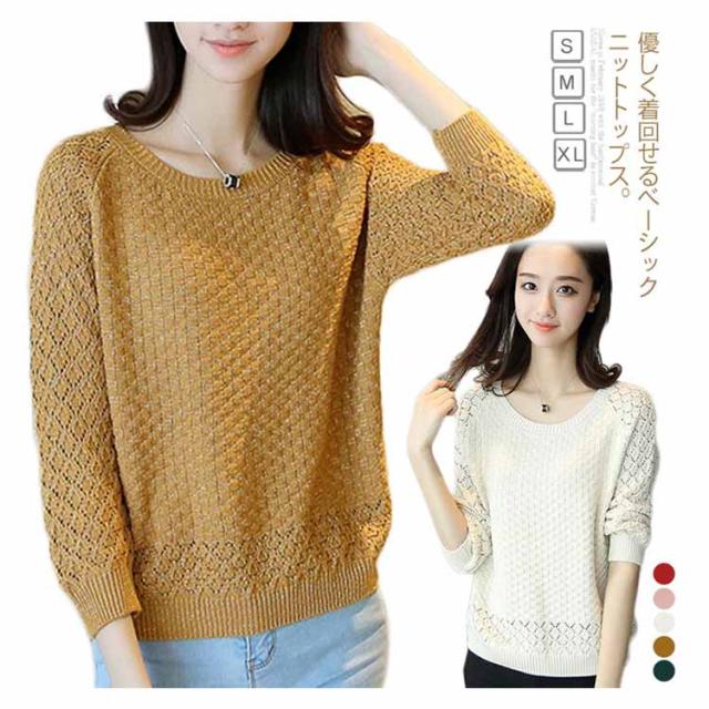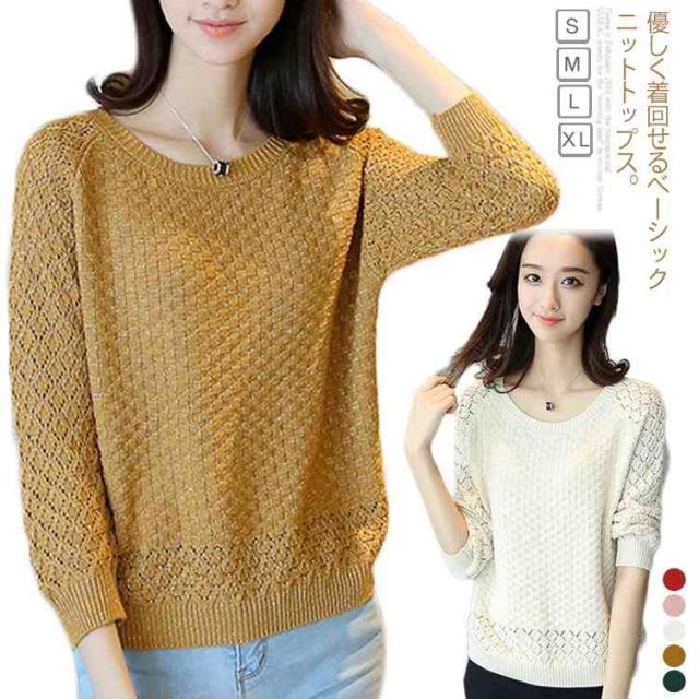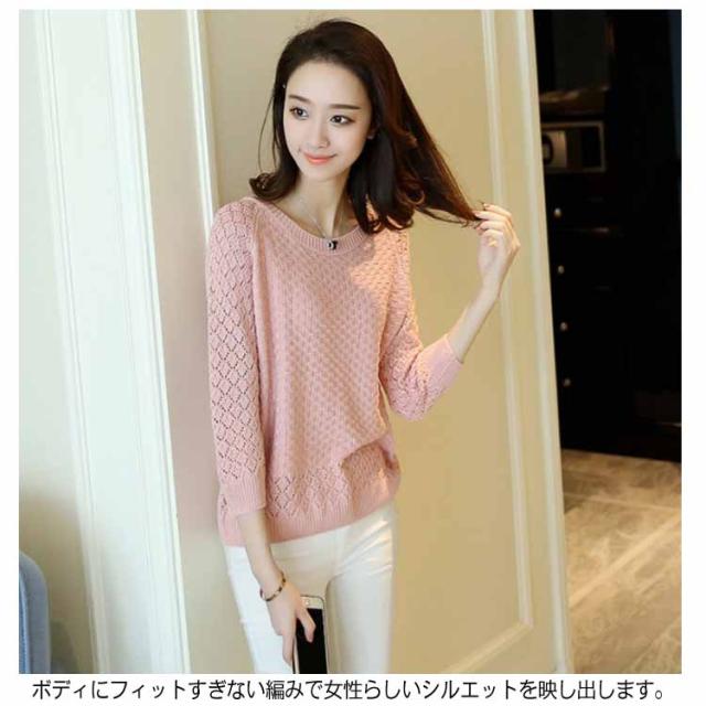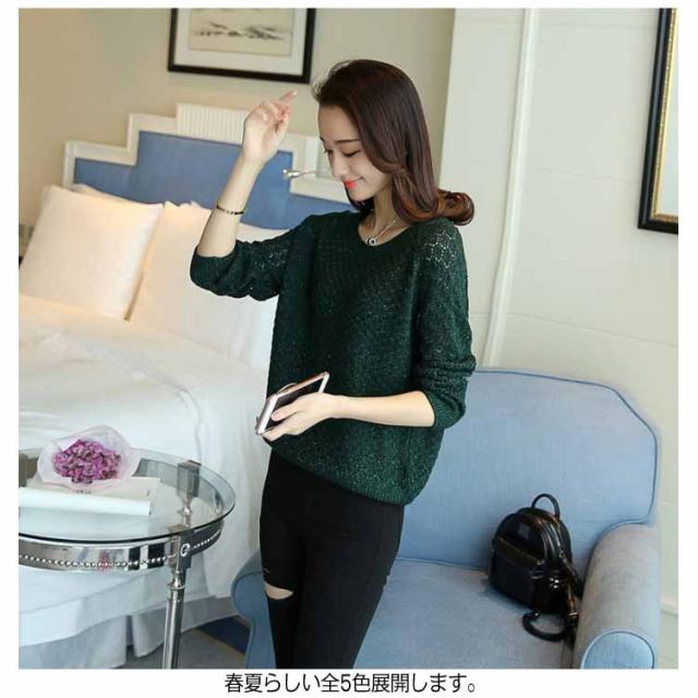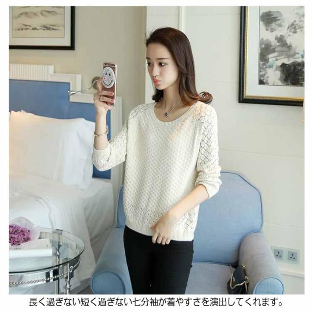 着やすさがたまらない!7分袖ニット クルーネックニット レディース ニット ニットトップス ニットソー プルオーバー 薄手 サマー 七分袖送料無料