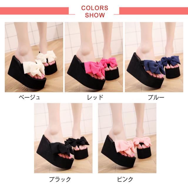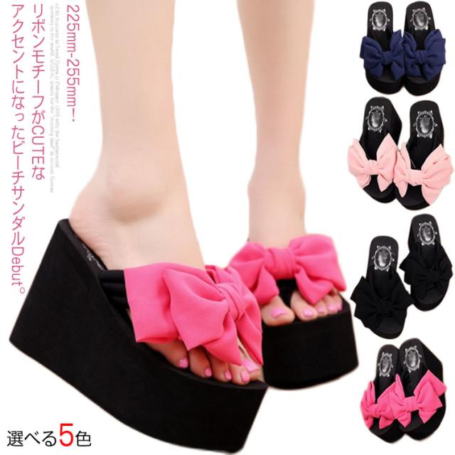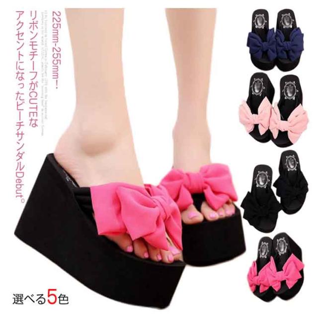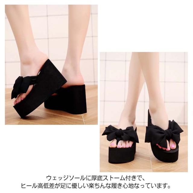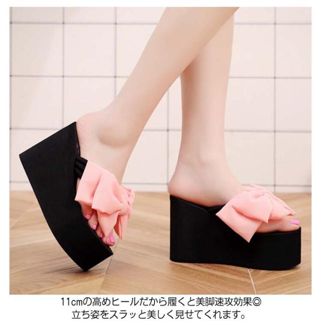 11cmヒール×大きめリボンが美脚速攻!ヒールサンダル 11cmヒール 夏靴 サンダル レディース 厚底サンダル ウエッジソールサンダル リボン付き トング 美脚 厚底 ウエッジソール 大きサイズ おしゃれ かわいい