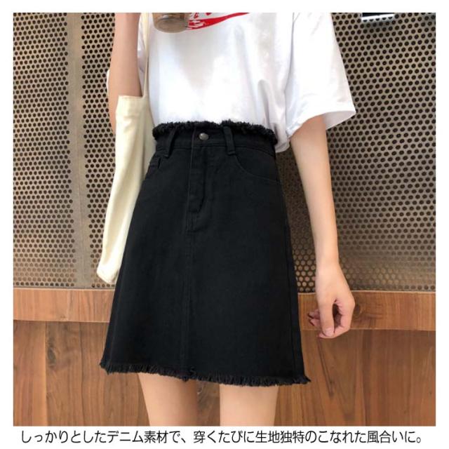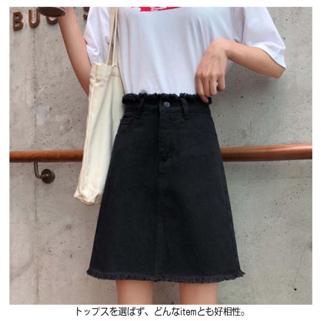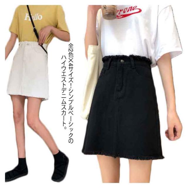 全2色×4サイズ!ハイウエストデニムスカート Aラインスカート ハイウエスト スカート デニムスカート 台型 ミニスカ ミニスカート 膝上丈 夏 新作 美脚 黒 白送料無料