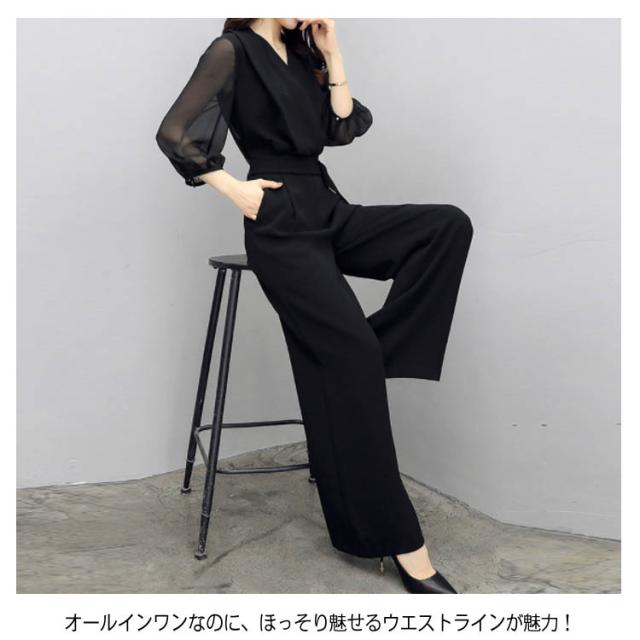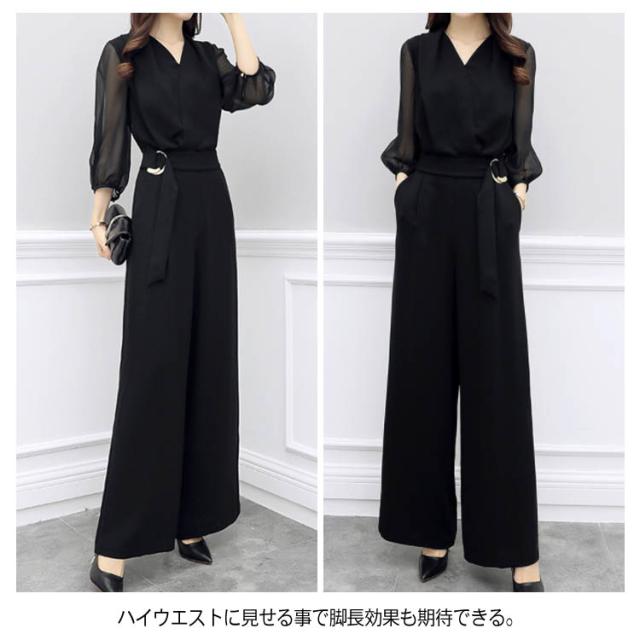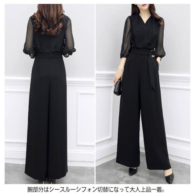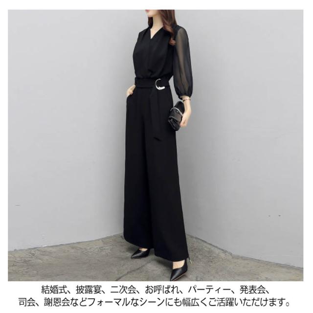 パンツドレス オールインワン パンツ ドレス 結婚式 セットアップ レディース お呼ばれ 服 7分袖 シースルー袖 Vネック フォーマル 大きいサイズ パーティー 披露宴 二次会 20代 30代 40代 50代送料無料