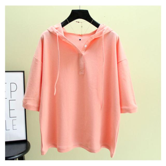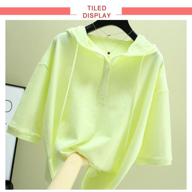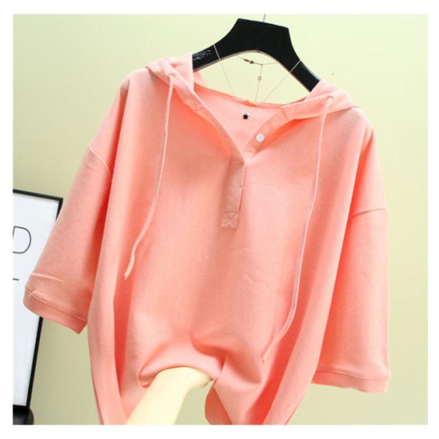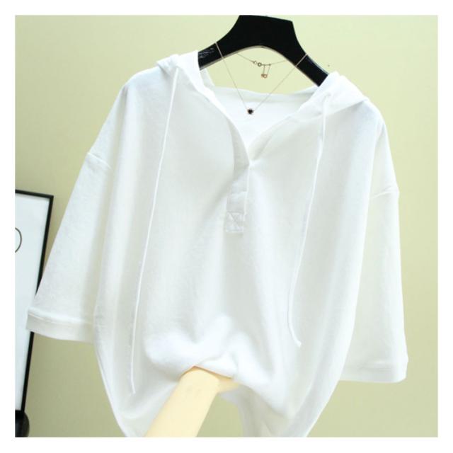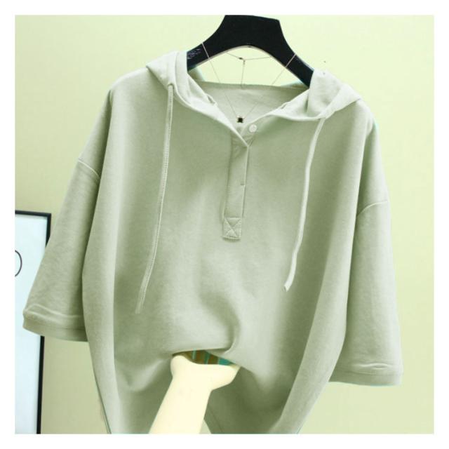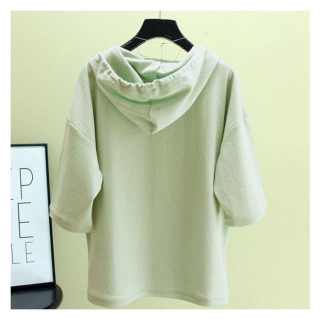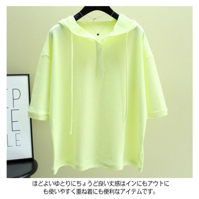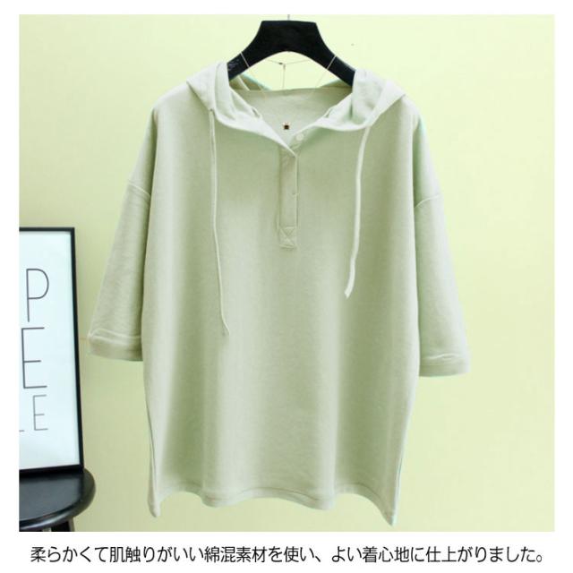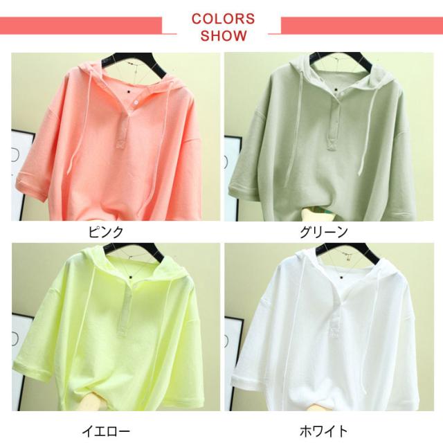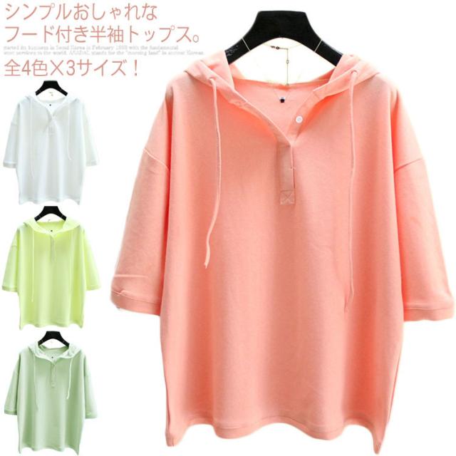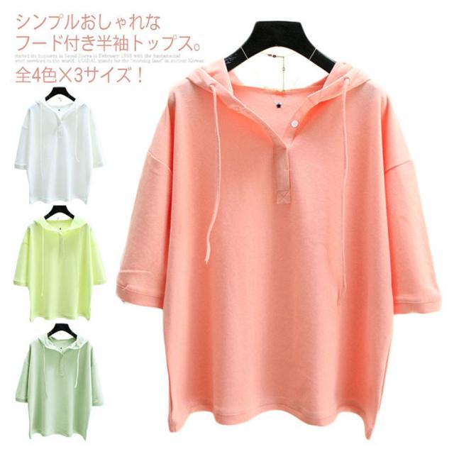 全4色×3サイズ!フード付き半袖tシャツ レディース パーカー tシャツ 半袖パーカー 半袖tシャツ フード付き 無地 シンプル ゆったり 可愛い 夏服