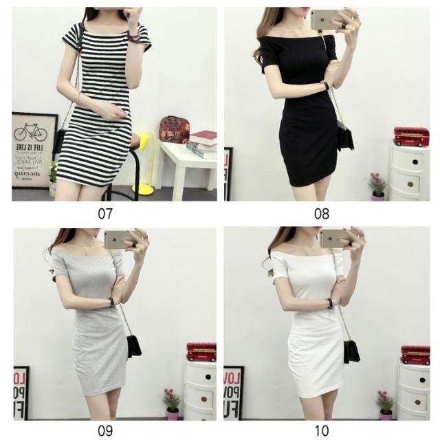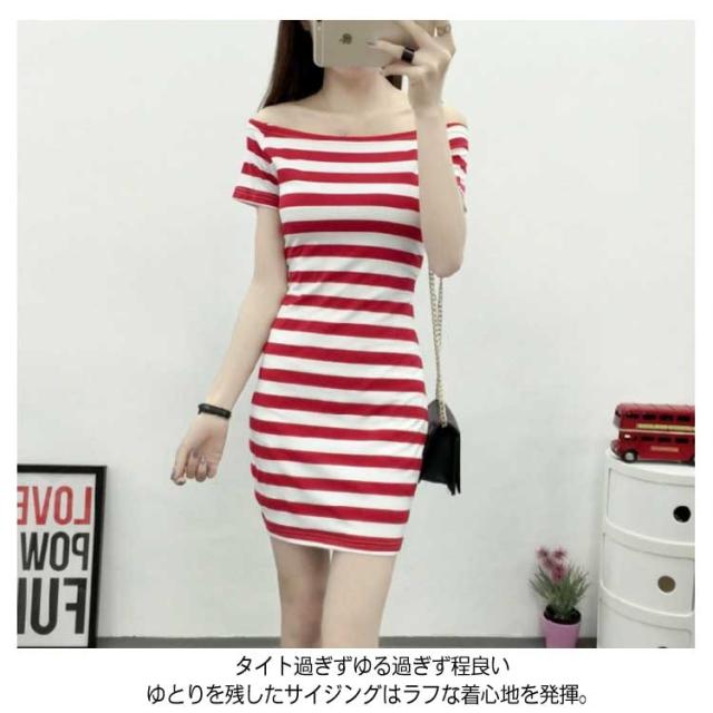 [ボーダー/無地 ラウンドネック/オフショルダー]ミニワンピース 夏 ワンピース 半袖ワンピース ミニ 膝上丈 タイトワンピース クルーネック ボートネック 大人 セクシー シンプル