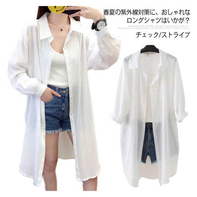 《》チェック/ストライプ ロングカーディガン レディース ロングシャツ ロング羽織り サマーカーディガン ロング丈 羽織り カーディガン シャツ トップス ライトアウター 日焼け防止 UV対策 白 春 夏送料無料