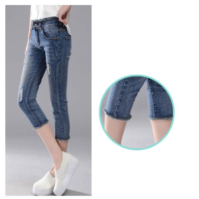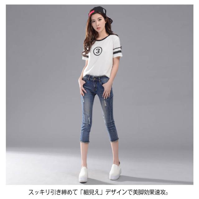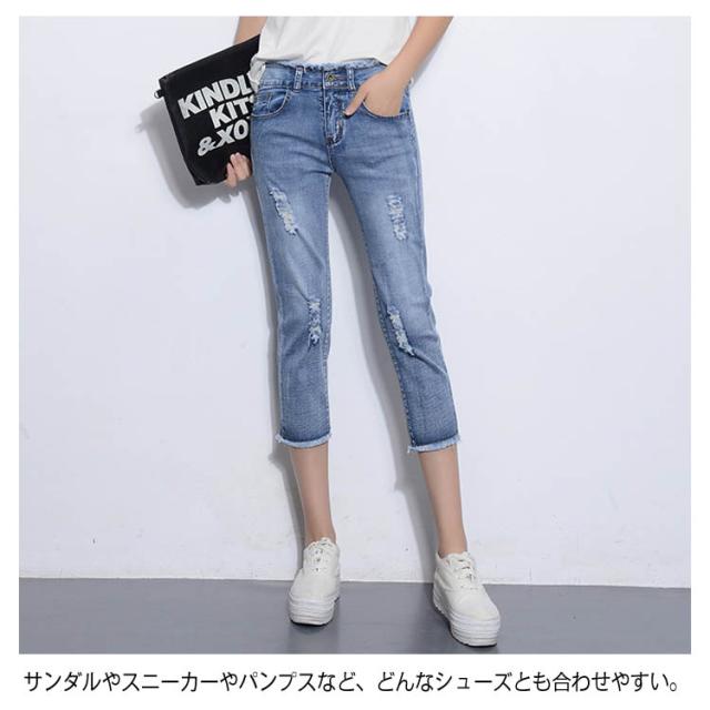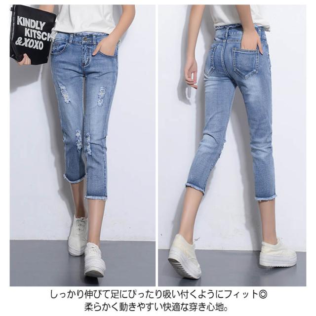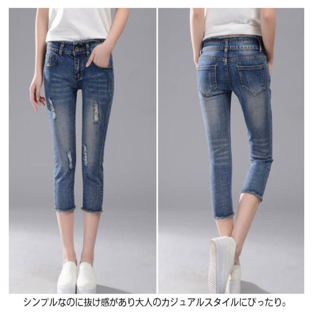 すらっと細見え美ライン!スキニーデニム レディース スキニーパンツ デニムパンツ ジーンズ レギパン クロップドパンツ 7分丈 ボトムス フリンジ カットオフ ダメージ加工 美脚 ストレッチ 春夏