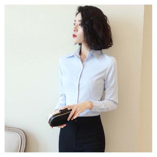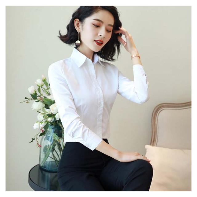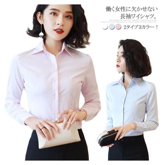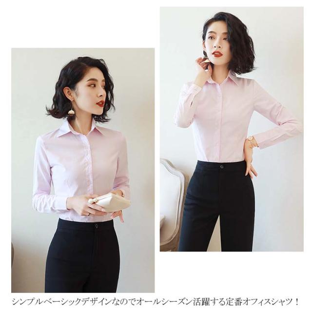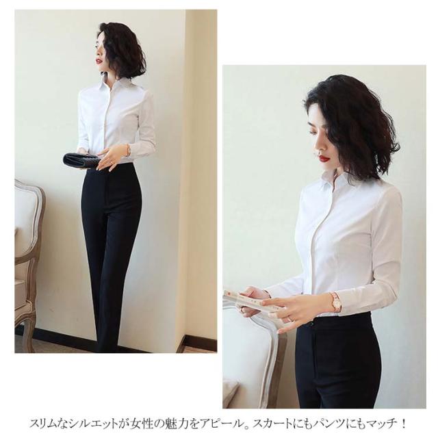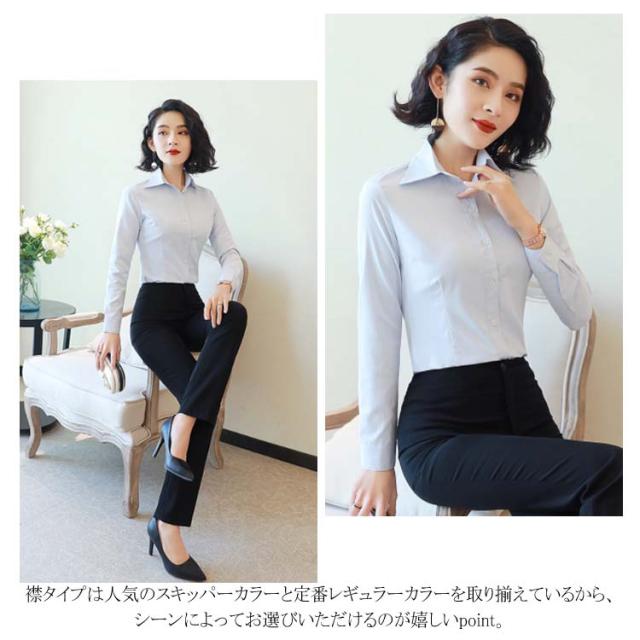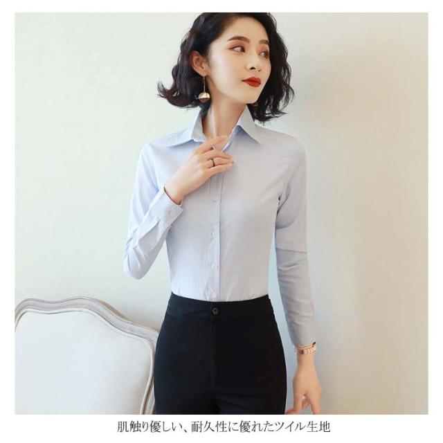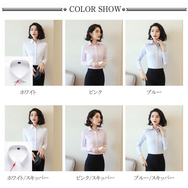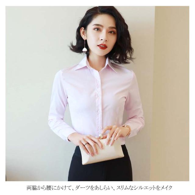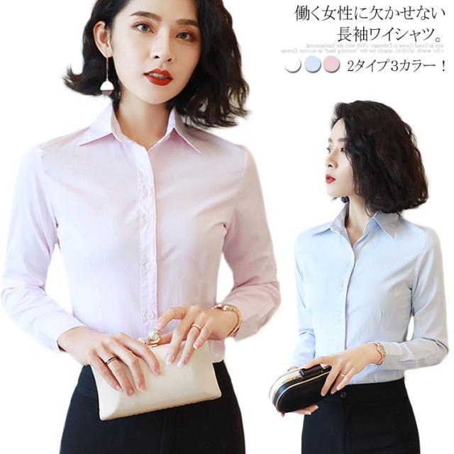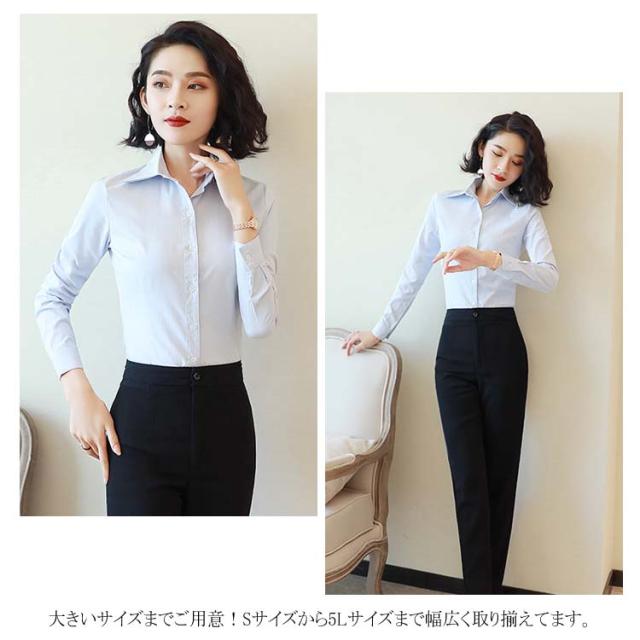 大きいサイズ ワイシャツ 事務服 制服 細身 スリム 長袖 シャツ レディース お仕事 ビジネスシャツ プチプラ