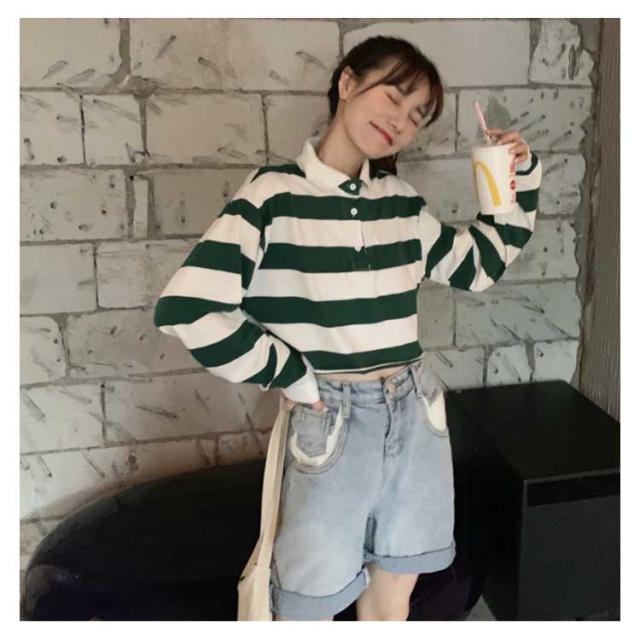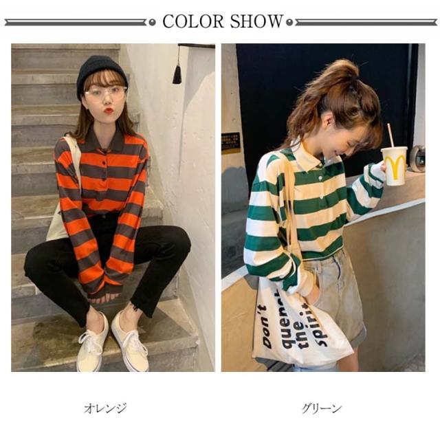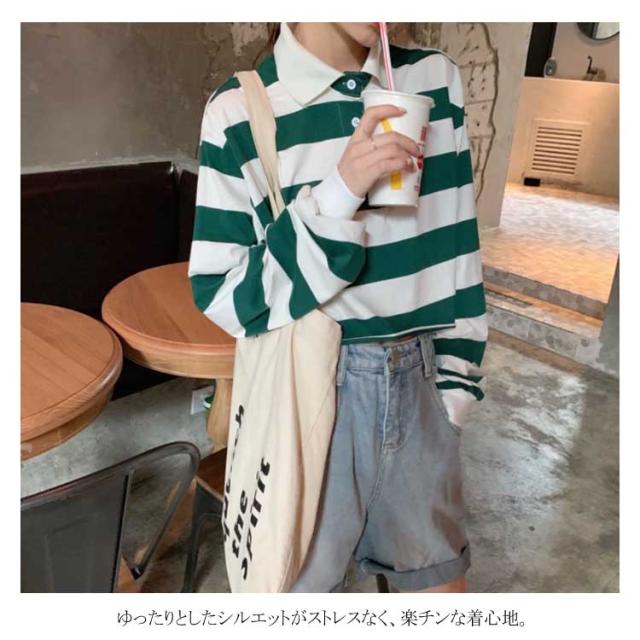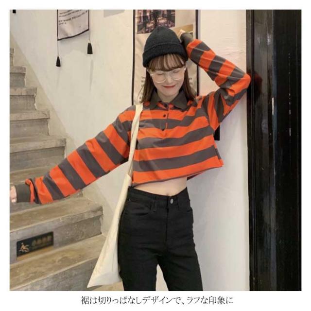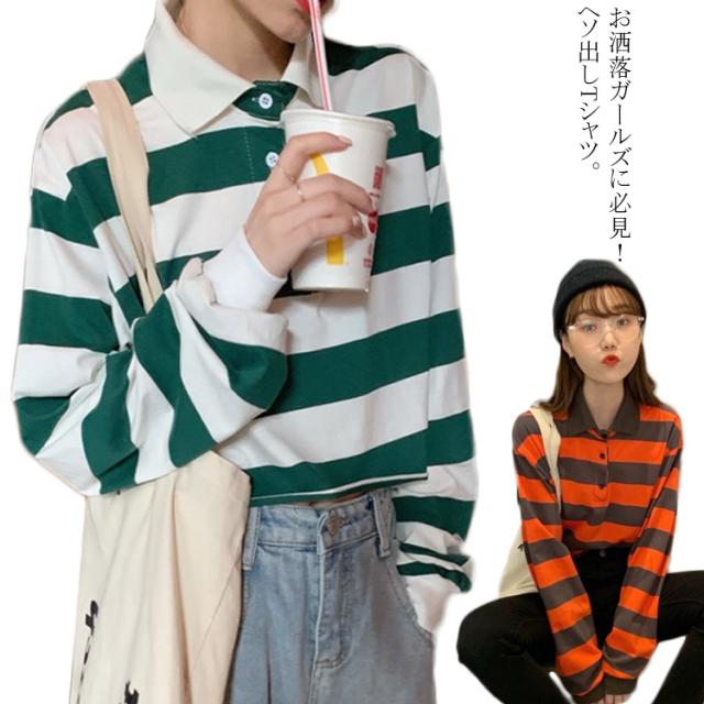 オシャレガールズに欠かせないへそ出しTシャツ 長袖Tシャツ ボーダー ポロシャツ ショート丈 Tシャツ トップス