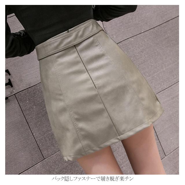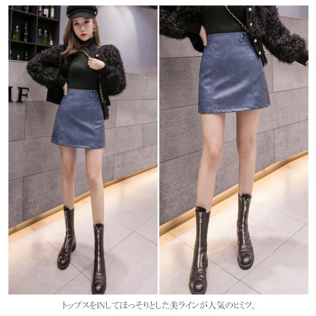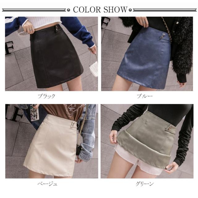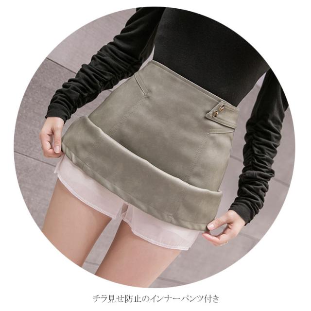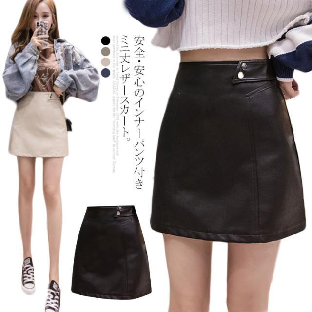 インナーパンツ付きで安心♪ フェイクレザー PUスカート タイトスカート ミニ丈 台形
