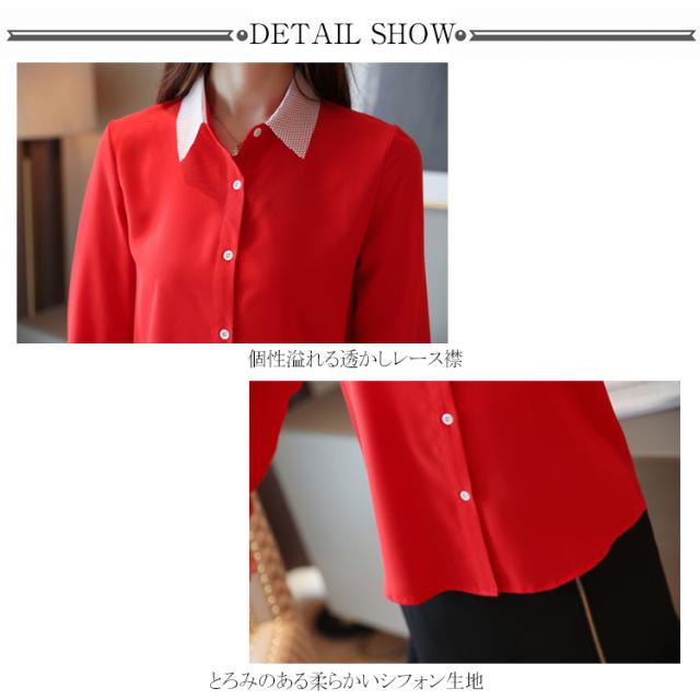 長袖シャツ 長袖ブラウス レース襟 透かしレース 通勤服 カジュアル フォーマル 卒園式 入園式 大人フェミニン