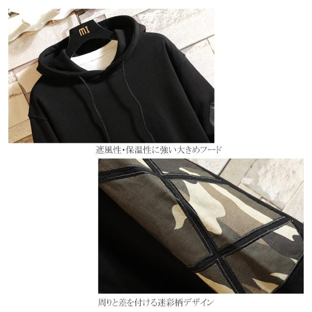 プルオーバーパーカー フード付き パーカー スウェット トップス メンズ レディース カッコイイ 迷彩柄