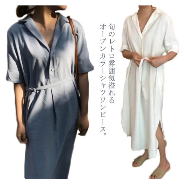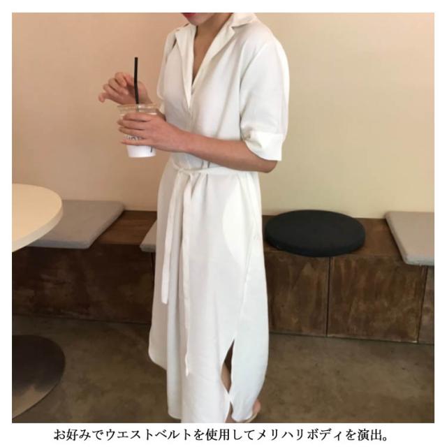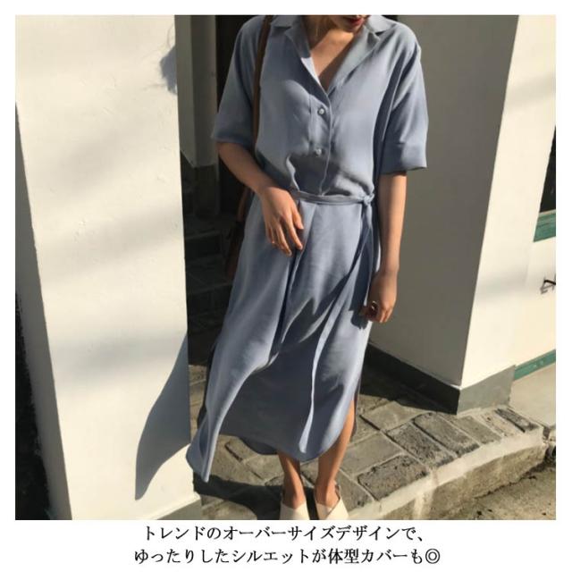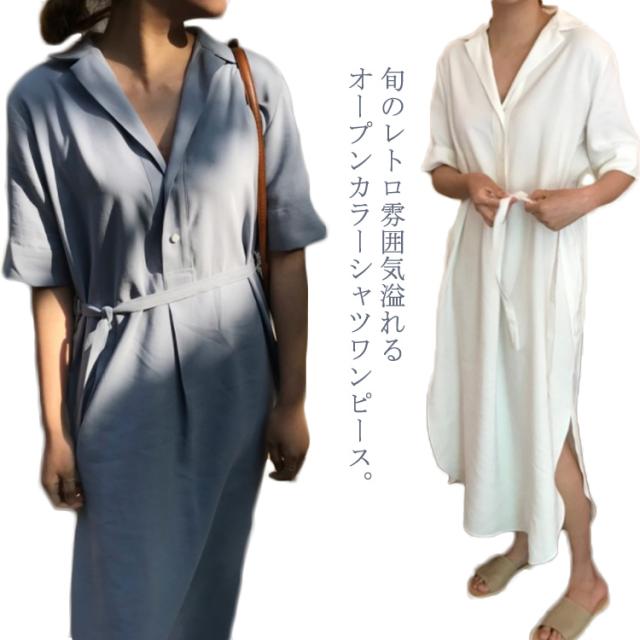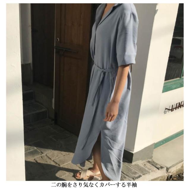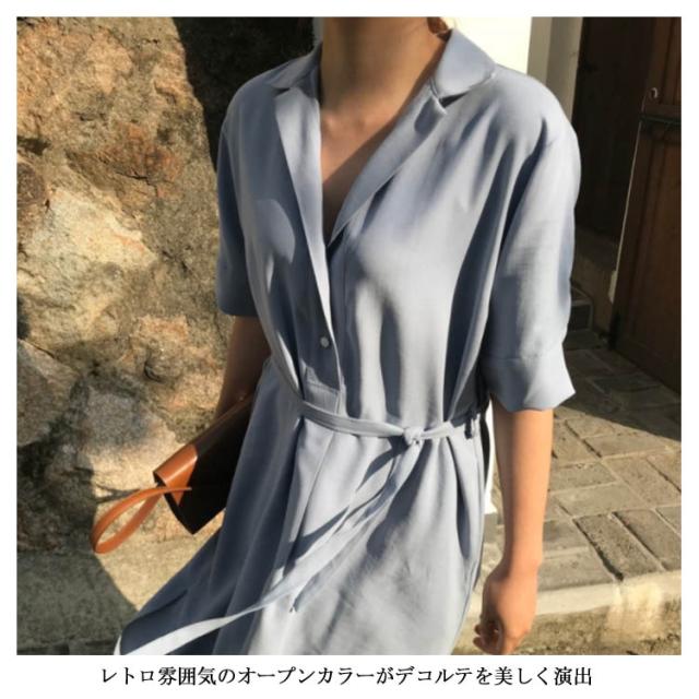 シャツワンピース プルオーバー プルオーバーシャツワンピース レトロ ワンピース 半袖シャツワンピ ゆったり オープンカラー スリット入り リボンベルト シャツワンピース ロング レディース 春夏 プルオーバー プルシャ 春夏 シフォン 薄送料無料