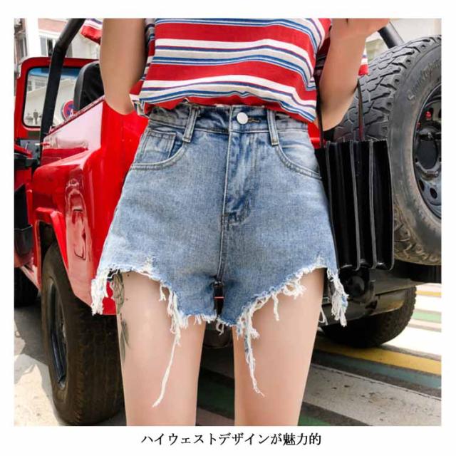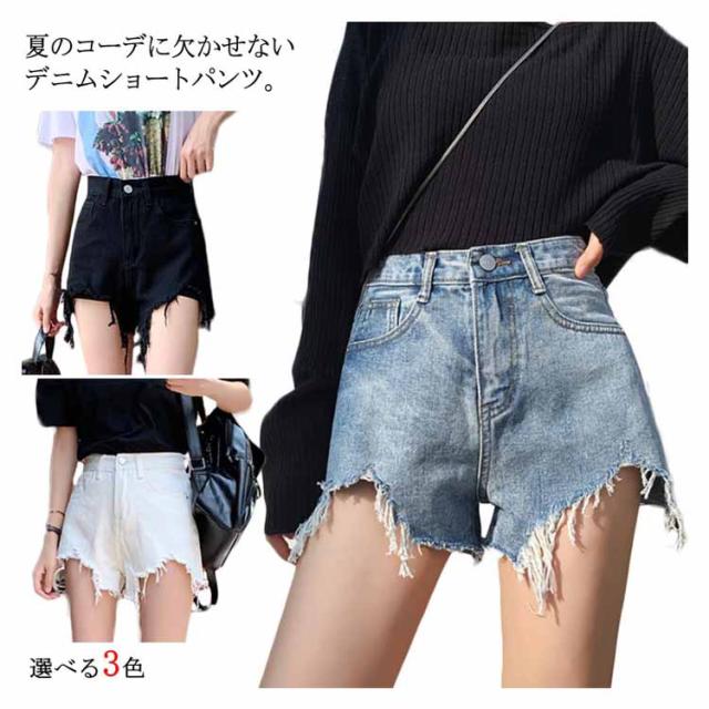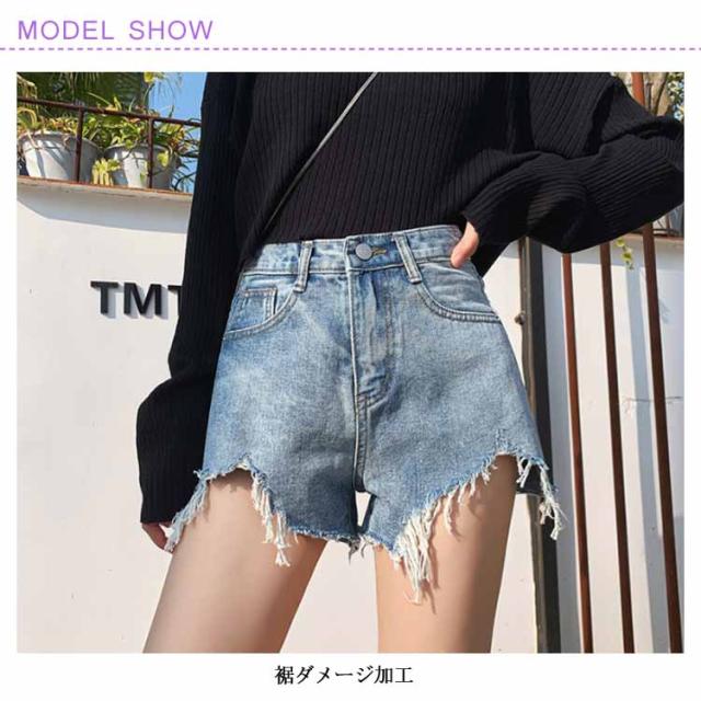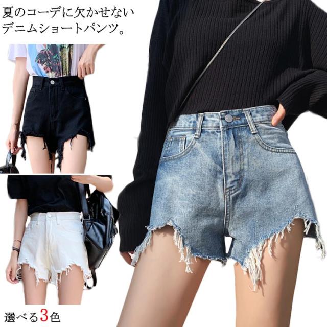 デニムパンツ ミニ丈 パンツ レディース ショートパンツ ダメージ加工 切りっぱなし ホットパンツ ショート丈 ワイドパンツ ジーンズ ショーパン デニムショーツ 短パン 春夏 美脚 ハイウェスト ミニ丈パンツ送料無料