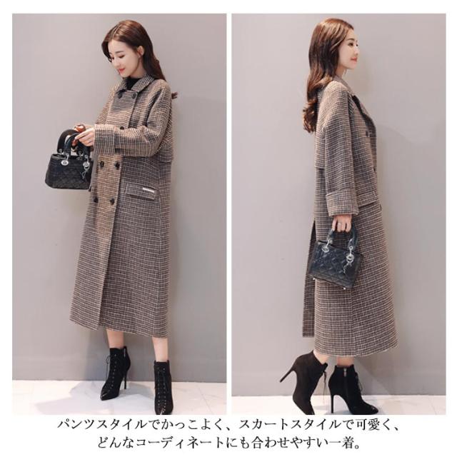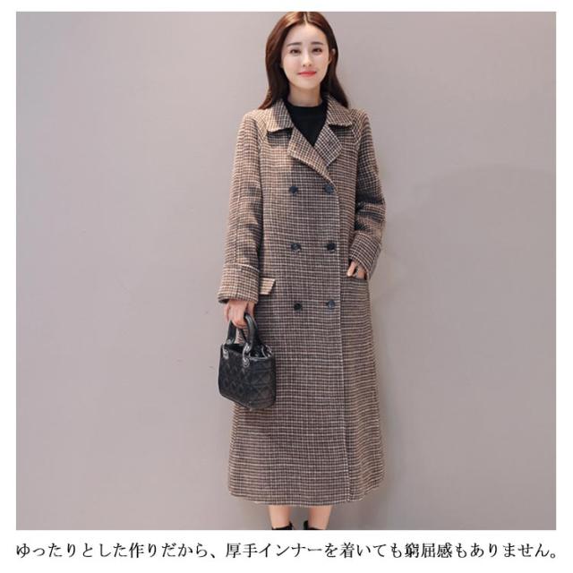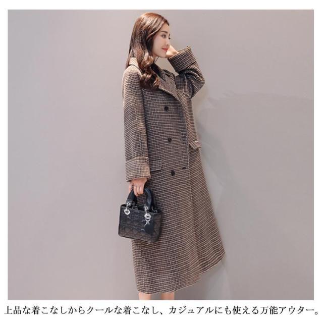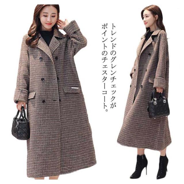 冬物 グレンチェック ロングコート チェスター アウター 膝下丈