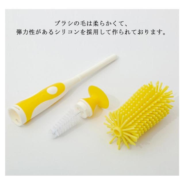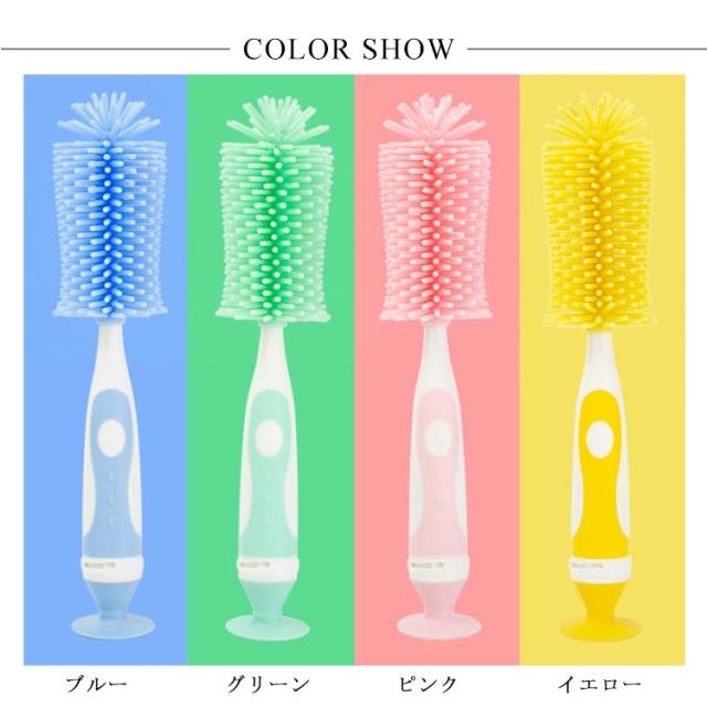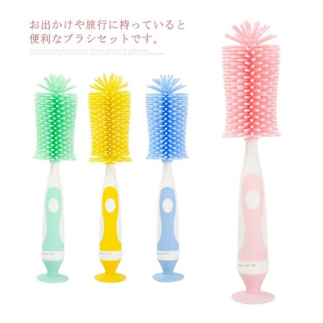 ボトルブラシ 哺乳瓶ブラシ 乳首ブラシ 水筒 洗浄ブラシ シリコン ブラシセット 2点セット 360度回転 吸盤式 使いやすい 持ち運び ベビー用品