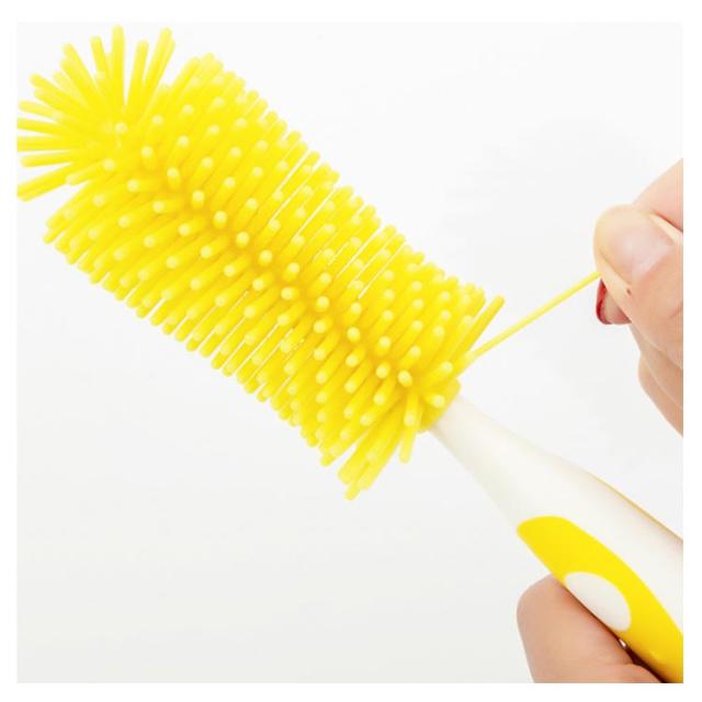| お出かけや旅行に持っていると便利なブラシセットです。 ブラシの毛は柔らかくて、弾力性があるシリコンを採用して作られております。 吸盤式のデザインでブラシを立てて置くのに十分な収納スペースがあります。 底部に乳首用のブラシが付き、小さな隙間に入った汚れも落とすことができます。 360°回転可能なので、ハンドルを回してぐるぐる回転洗い! お湯に強くて衛生で安全にご使用いただけます。 | |