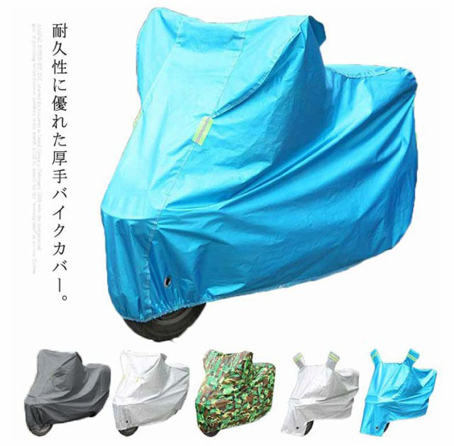 | 耐久性に優れた厚手バイクカバー。 裏側はもこもこ起毛素材で、愛車を傷つくことなく、ホコリ、雨、雪、紫外線などからしっかり守る。 ワイヤーロックリング穴を搭載しているので、防風・防盗の効果もバツグン。 絞りゴムとバックルで風に飛ばさないから安心。 反射テープ付きで夜の駐輪場でもわかりやすい。 愛車がすっぽり覆われて、より長持ちできる保護カバー。 ミニバイク、スクーター、ビジネス、スーパースポーツなど大きいサイズまで全5サイズ展開。 | |