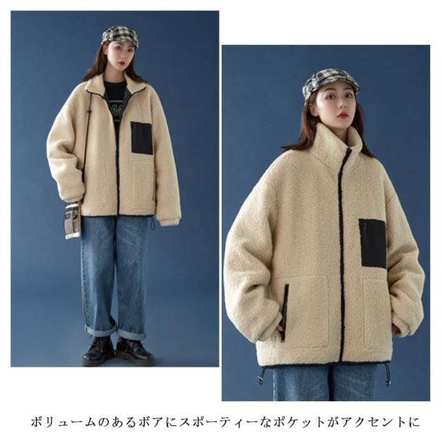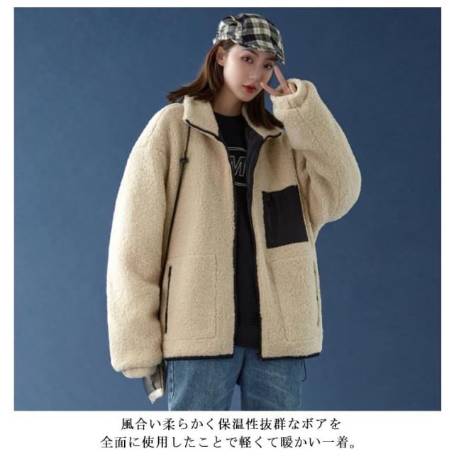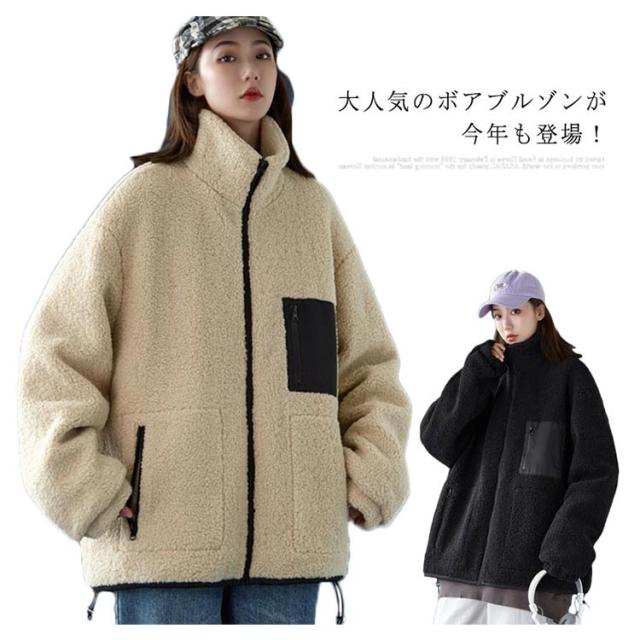 温もりボアで今着たい!立ち襟 ボアコート ボア ブルゾン レディース 大きいサイズ 秋 冬 ボア フード付き アウター コート ファー もこもこ 防寒 大人 体型カバー ゆったり 秋冬 冬物 おしゃれ 可愛い