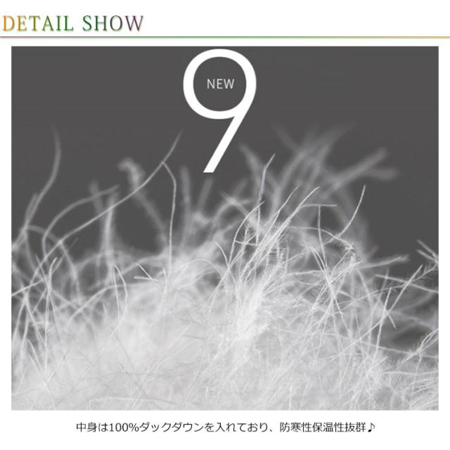 | 素材 | 表裏:ポリエステル100% 中身:ダックダウン |