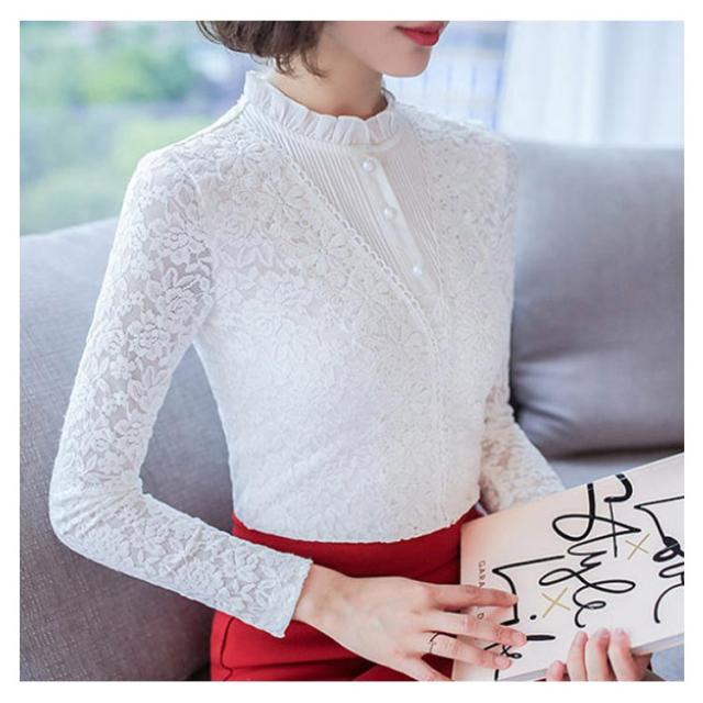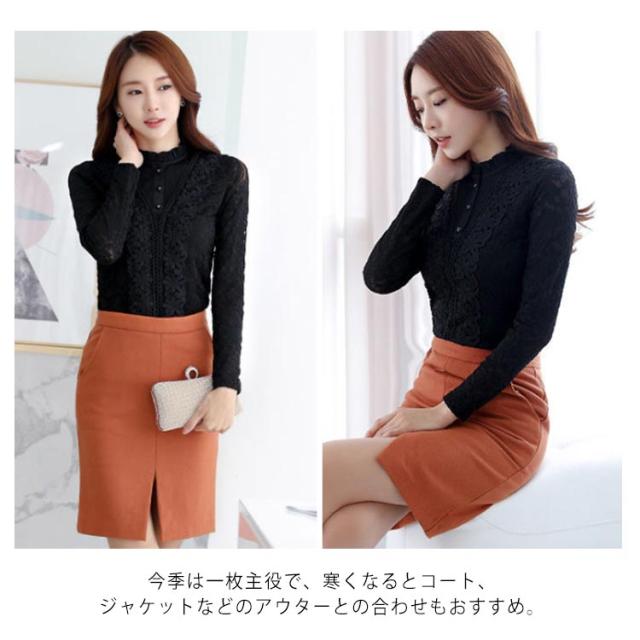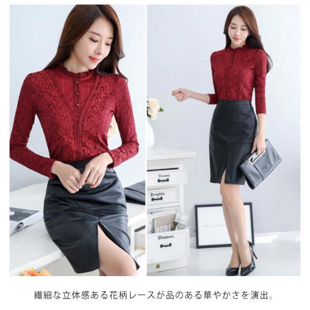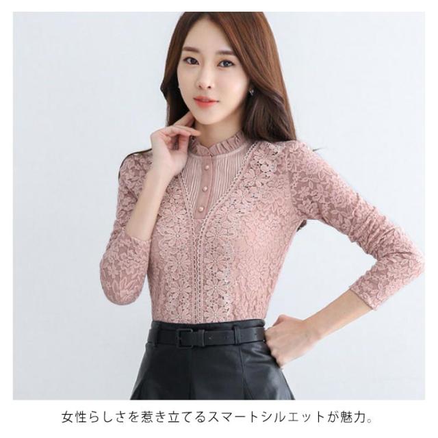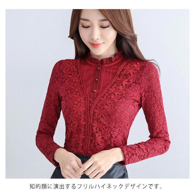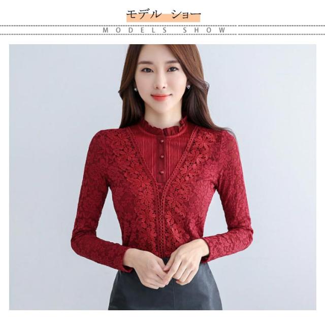 S-5XLサイズ!レースブラウス 裏起毛 シャツ ブラウス トップス インナー 立体フラワー レース 花柄 刺繍 秋冬 キレイめ 小さいサイズ 大きサイズ 防寒 暖かい