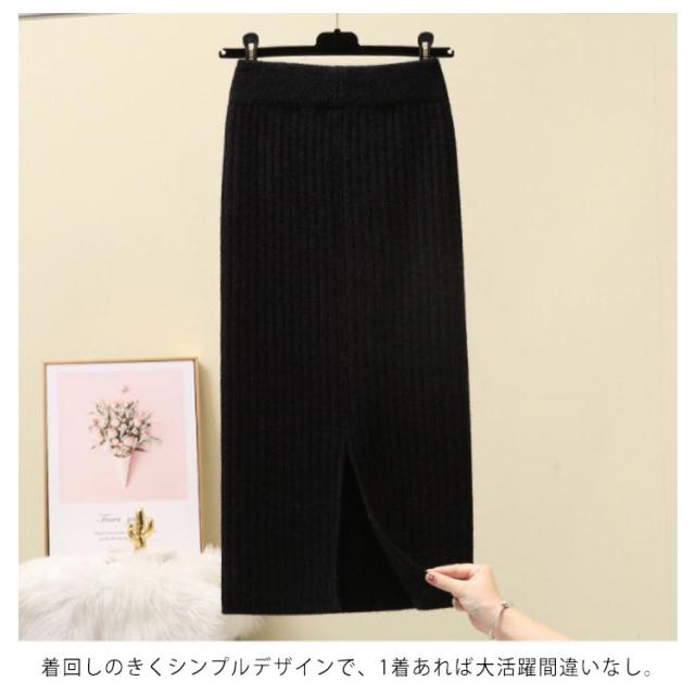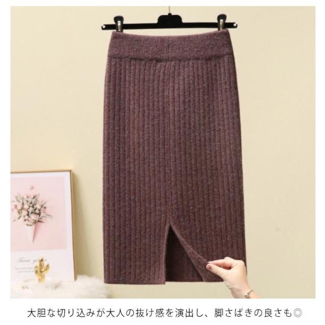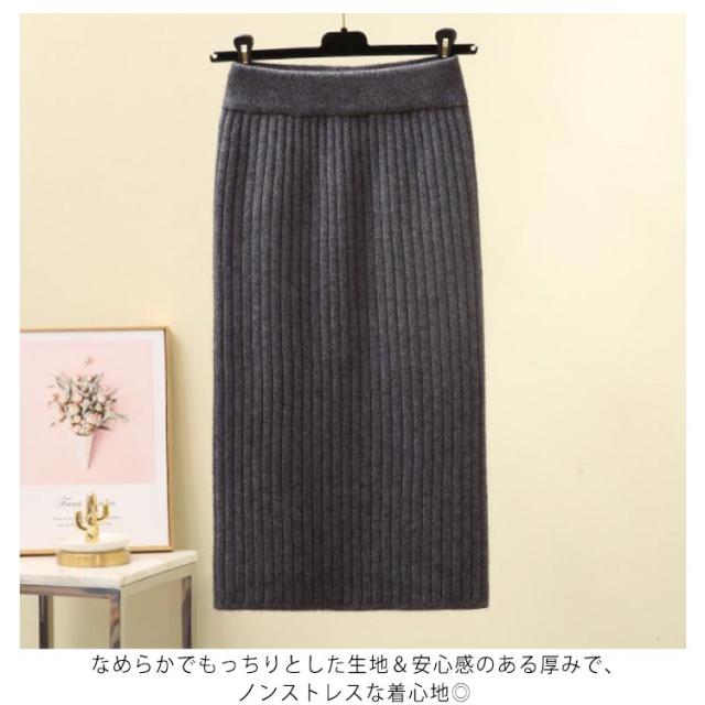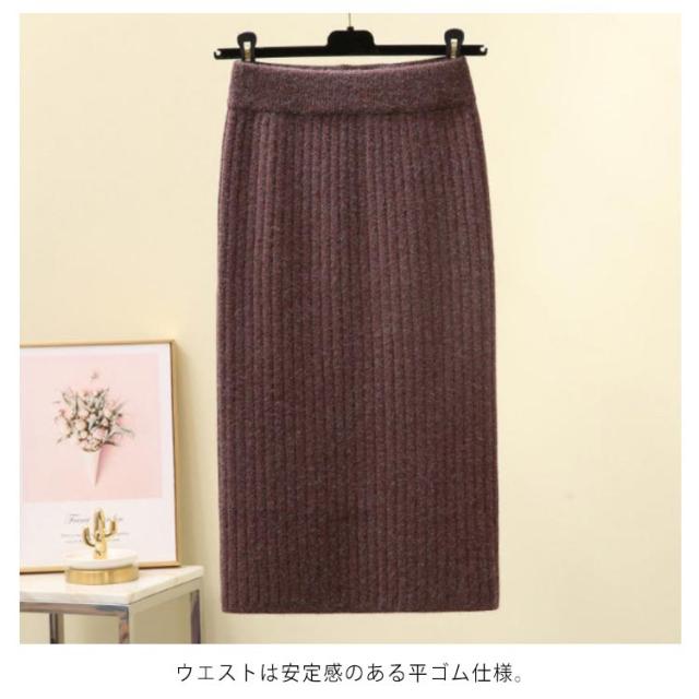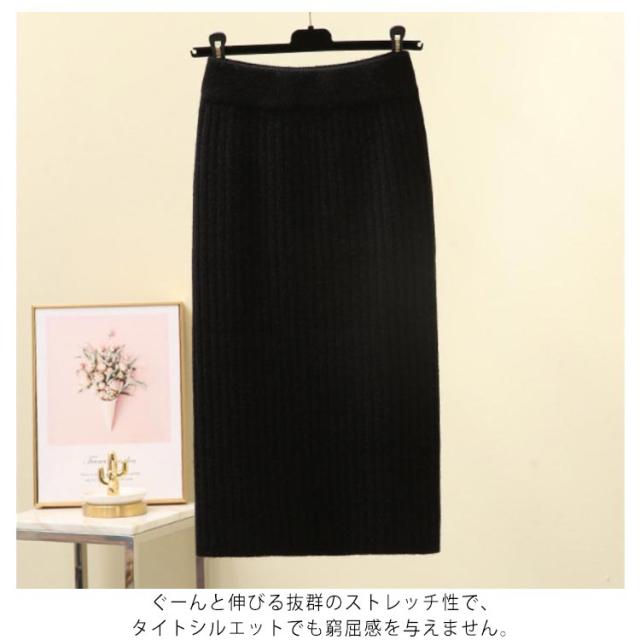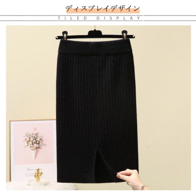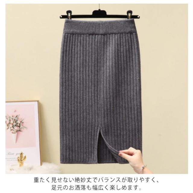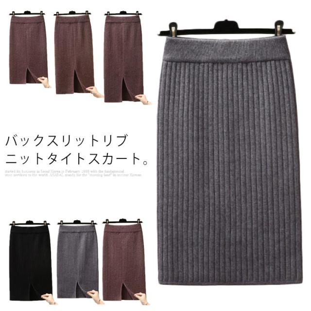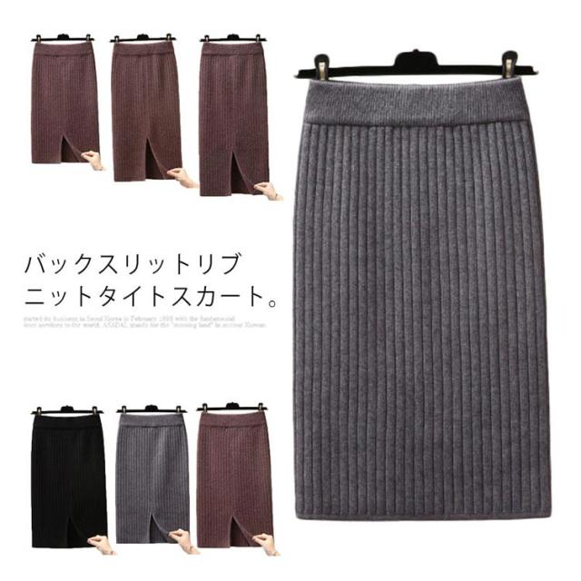 タイトスカート ニットスカート バックスリット ペンシルスカート 膝丈 ミモレ丈 ロング丈 スリットリブニット スリット入り スカート ウエストゴム 秋冬 秋 冬 タイト 無地