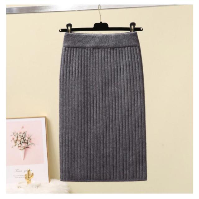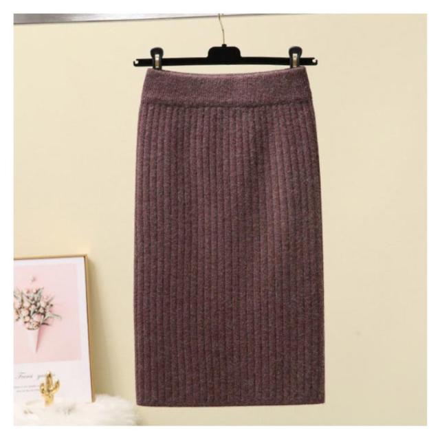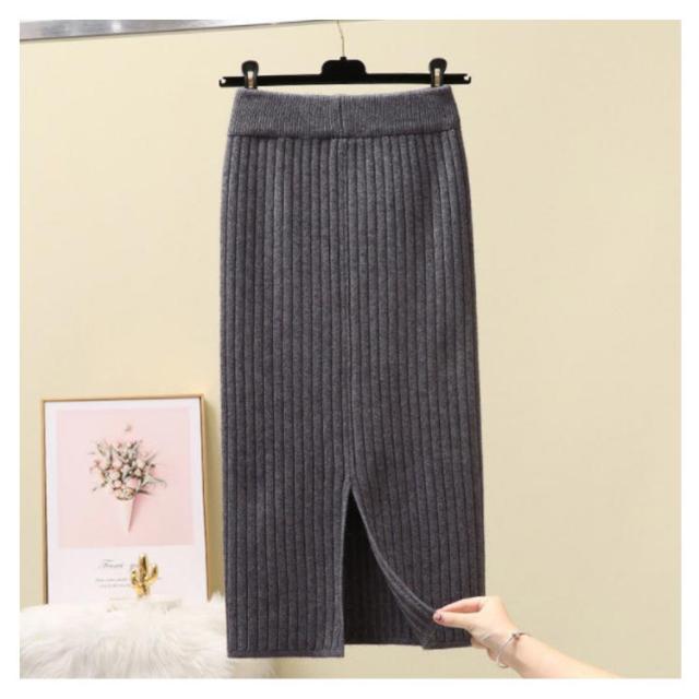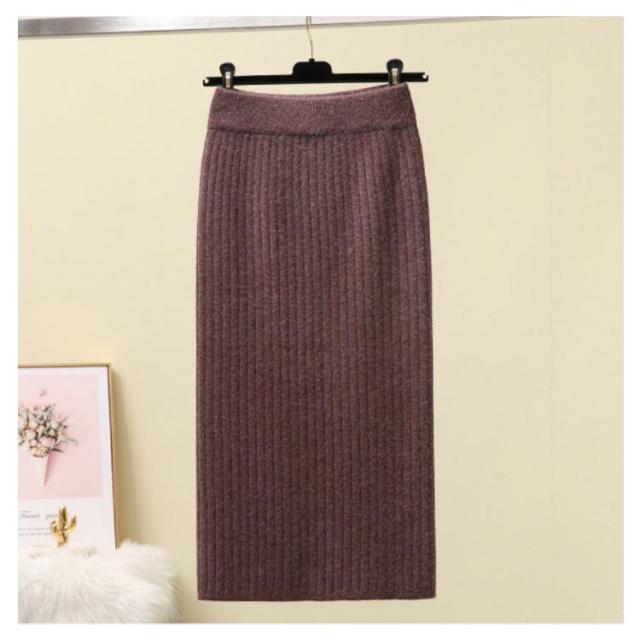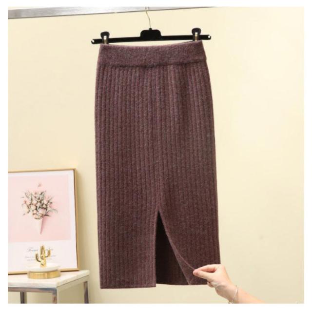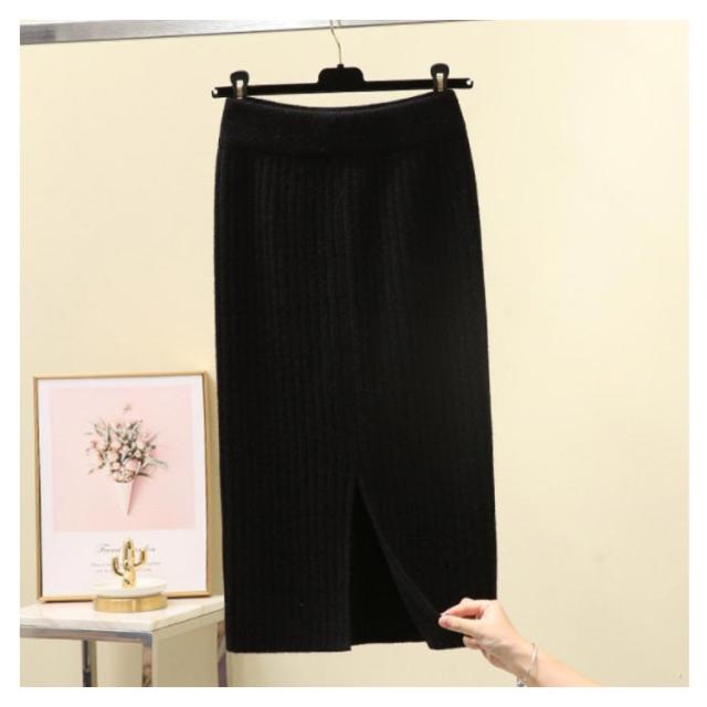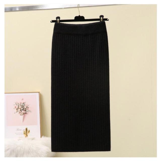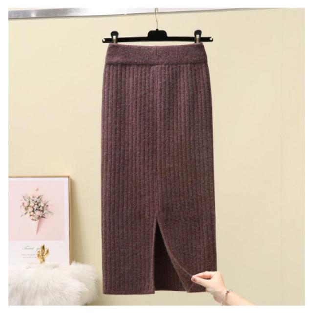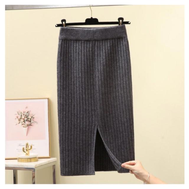 タイトスカート ニットスカート バックスリット ペンシルスカート 膝丈 ミモレ丈 ロング丈 スリットリブニット スリット入り スカート ウエストゴム 秋冬 秋 冬 タイト 無地