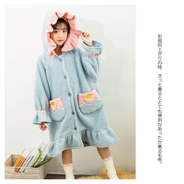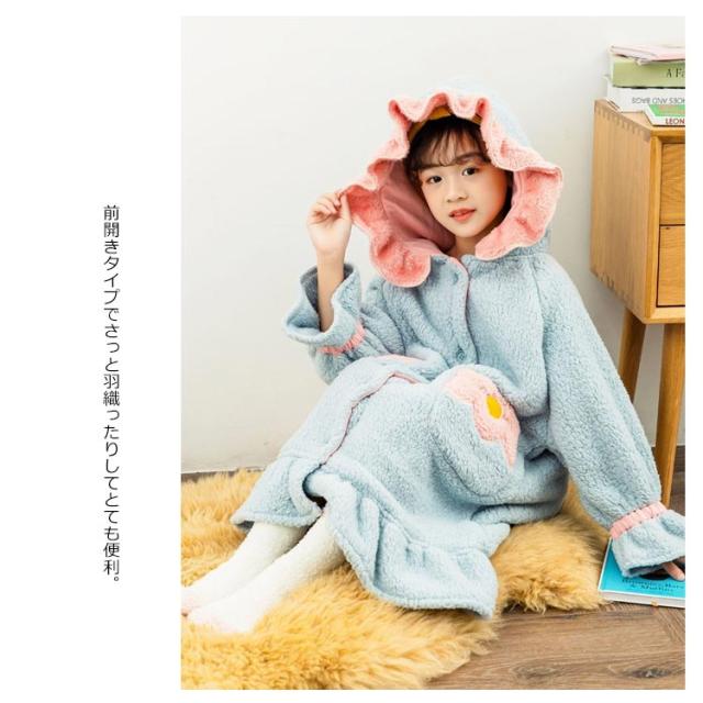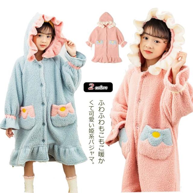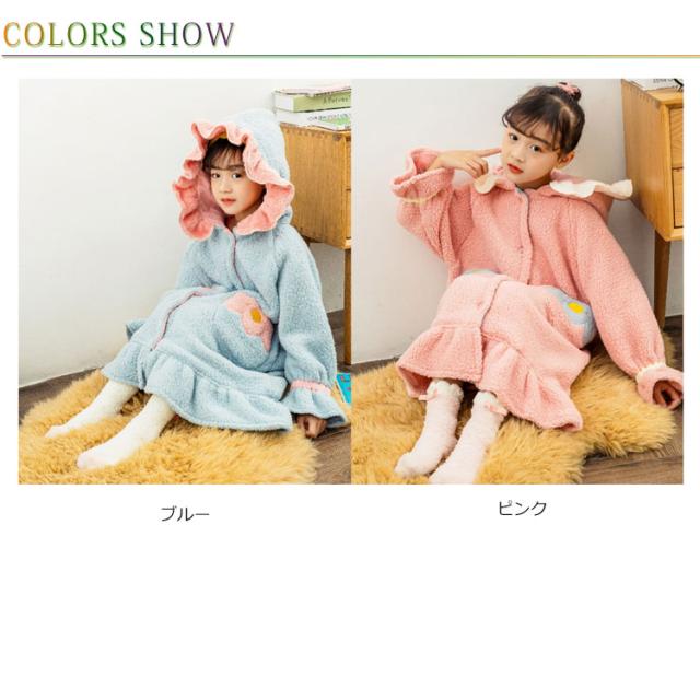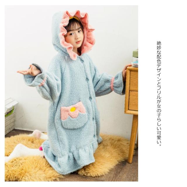 着る毛布 ガウン 子供服 女の子 ジュニア キッズ ボア フリル バイカラー フード付 ルームウェア 部屋着 パジャマ 羽織り 可愛い バスローブ ワンピース 110 120 130 140 150 160