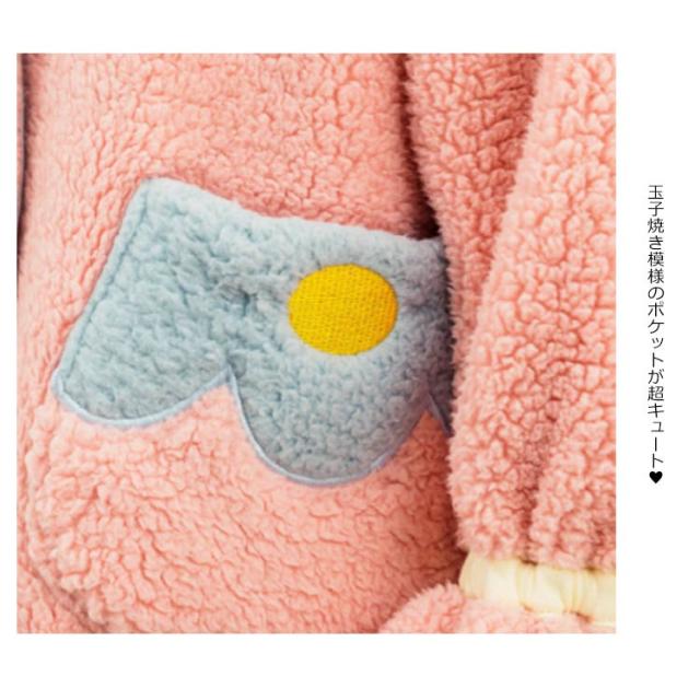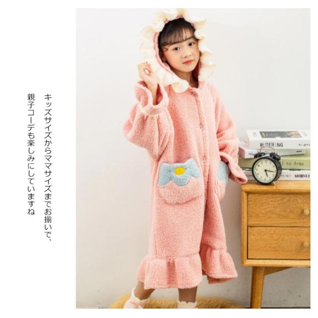 | ふわもこ暖かくて可愛い姫系パジャマ。 絶妙な配色デザインとフリルが女の子らしい可愛い。 玉子焼き模様のポケットが超キュート? 前開きタイプでさっと羽織ったりしてとても便利。 お風呂上がりの時、さっと着るととても便利なあったか着る毛布。 キッズサイズからママサイズまでお揃いで、親子コーデも楽しみにしていますね。 | |