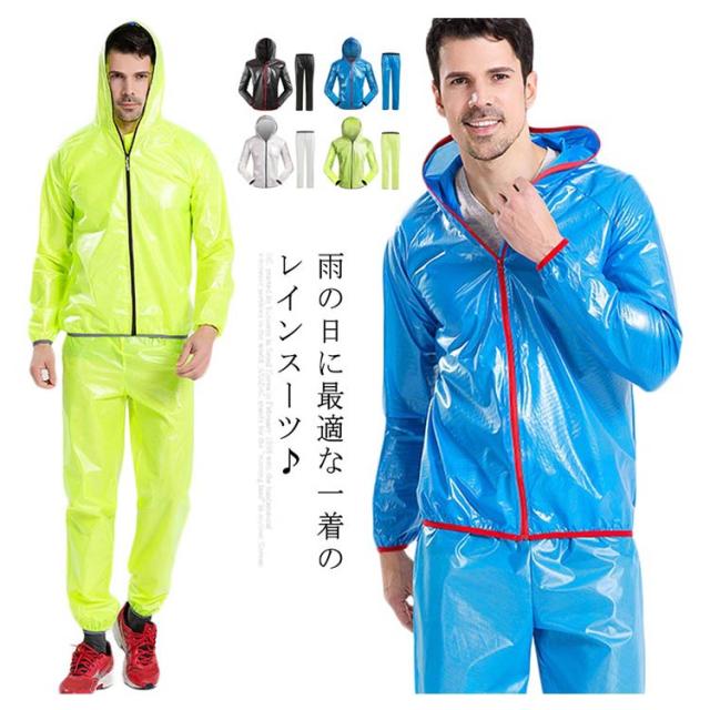 送料無料 レインコート メンズ レインウェア 上下セット サイクルレインウエア 雨パンツ レインスーツ 雨合羽 自転車 雨具 ウェア アウトドア カッパ バイク 蒸れにくい フード付き 登山 ランニング