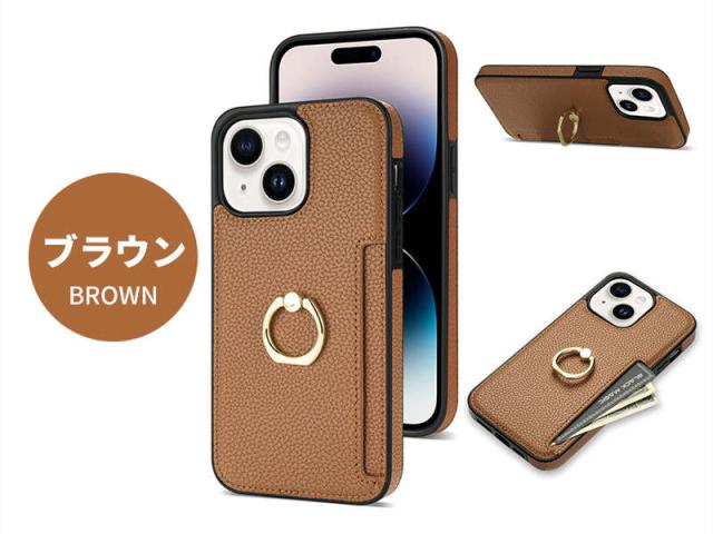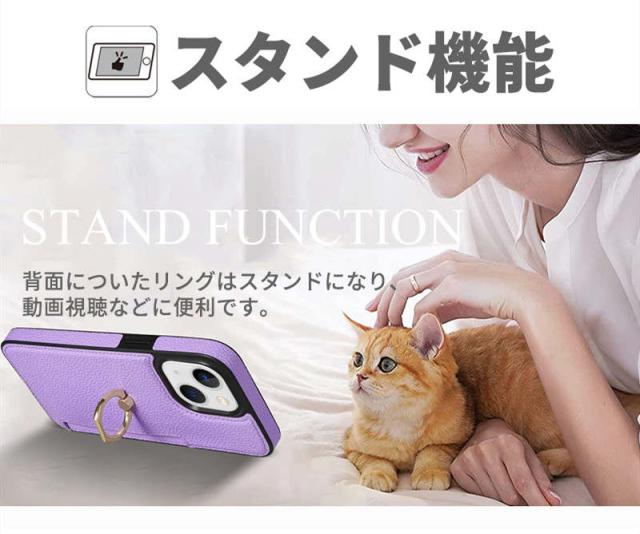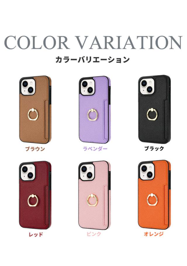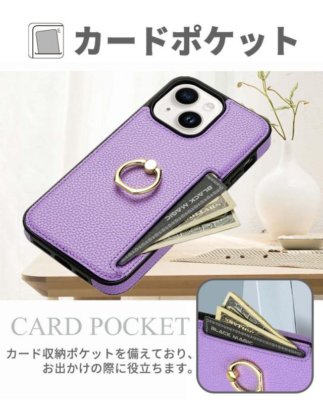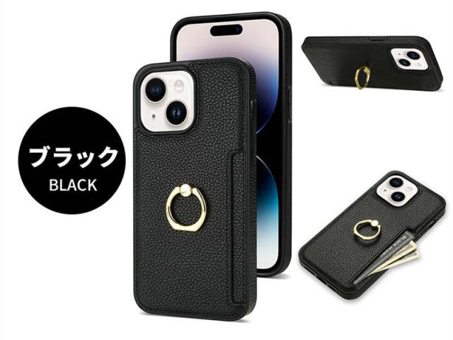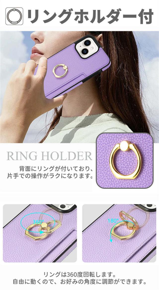 ?素材:PUレザー+TPU 【機能】: ○リングホルダー付 背面にリングが付いており、片手ので操作がラクになります。 リングは360度回転します。 自由に動くので、お好みの角度に調節ができます。 ○スタンド機能 背面についたリングはスタンドになり、 動画視聴などに便利です。 ○カードポケット カード収納ポケットを備えており、 お出かけの際に役立ちます。