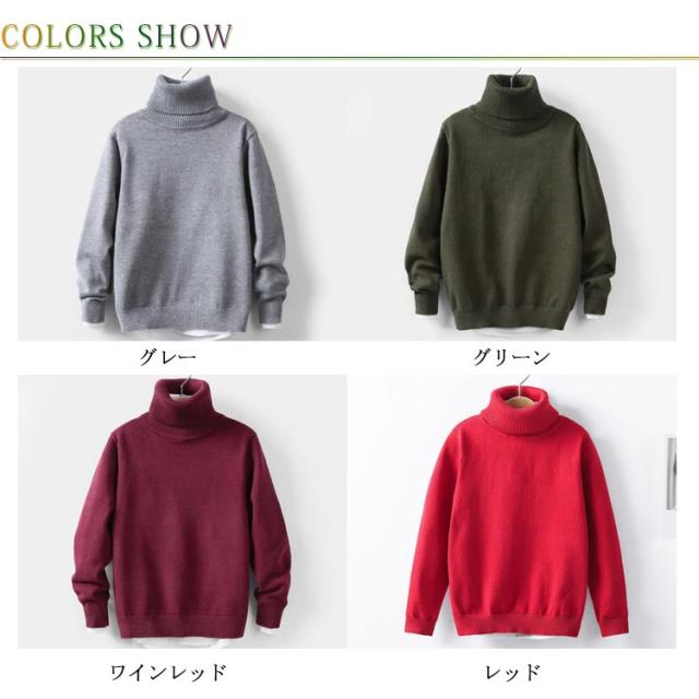 | 体のラインに程よくフィットフィットするタートルネックニットセーター。 合わせやすいシンプルなデザイン、インナーにも大活躍。 柔らいハイケージニット、チクチクしない肌触り優しい着心地◎ 真冬でも暖かいもこもこ裏起毛タイプも仲間入り! 男の子でも女の子でもご着用いただけるユニセックスなデザイン、全8色の豊富なカラー展開! | |