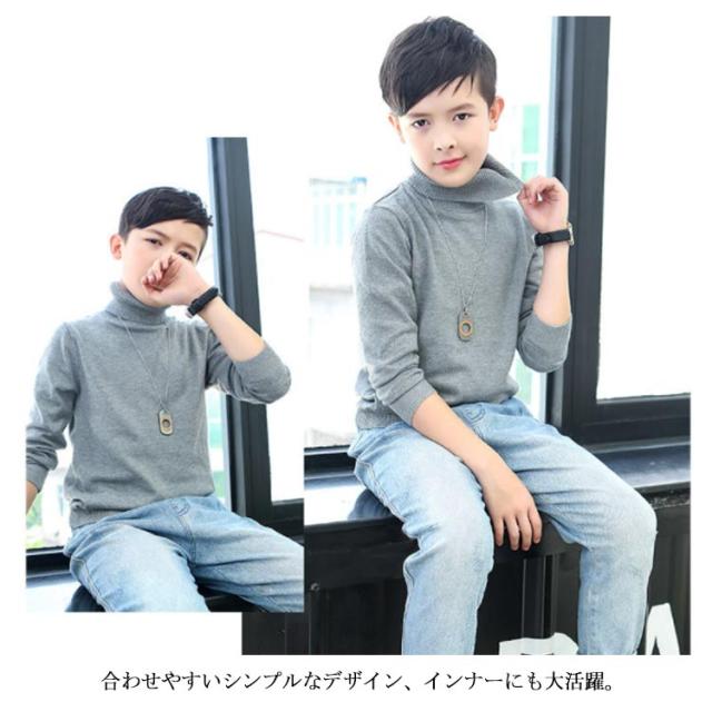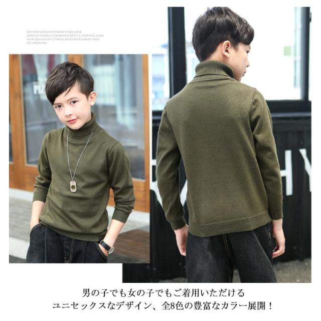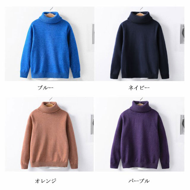 全8色 選べる厚み ニットトップス タートルネック セーター 子供服 キッズ 男の子 女の子 長袖 裏起毛 インナー トップス 無地 秋冬 ハイケージ 100 110 120 130 140 150