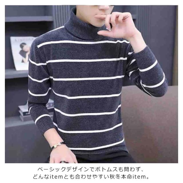 M-4XLサイズ!ニット セーター メンズ ハイネックニット タートルニット オフタートル 無地ニット ボーダー柄 長袖 プルオーバー 厚手 暖かい 防寒 冬 冬服 冬物 メンズファッション 大きサイズ