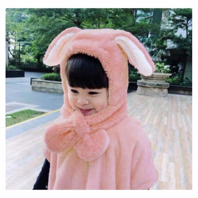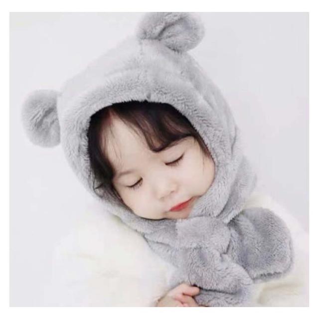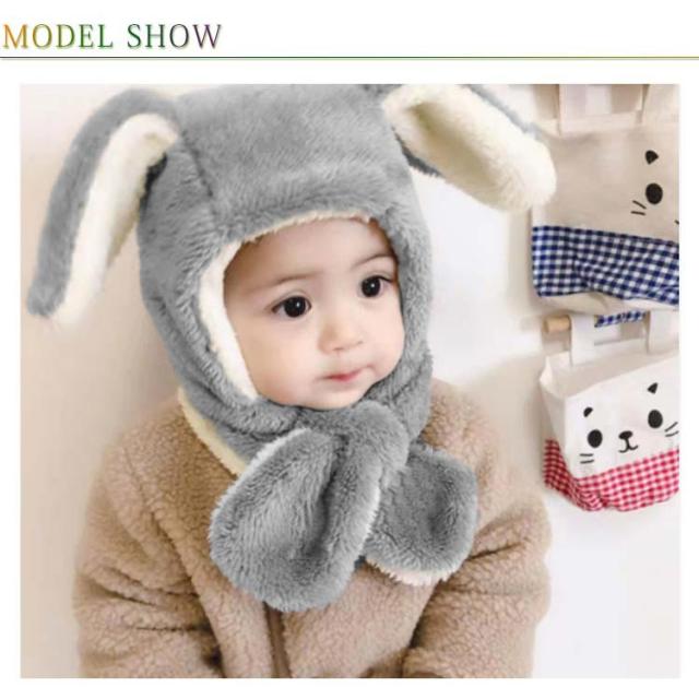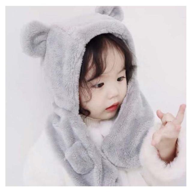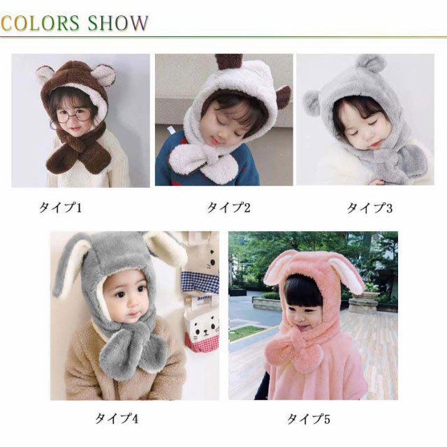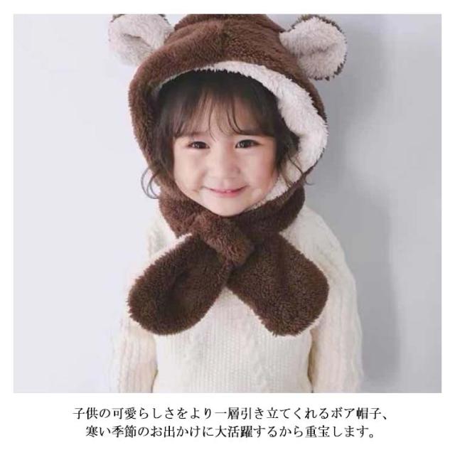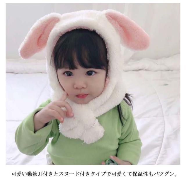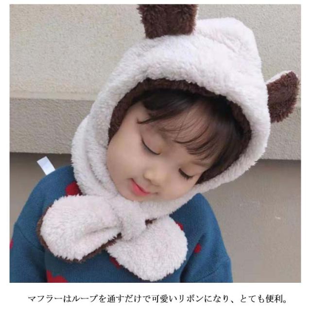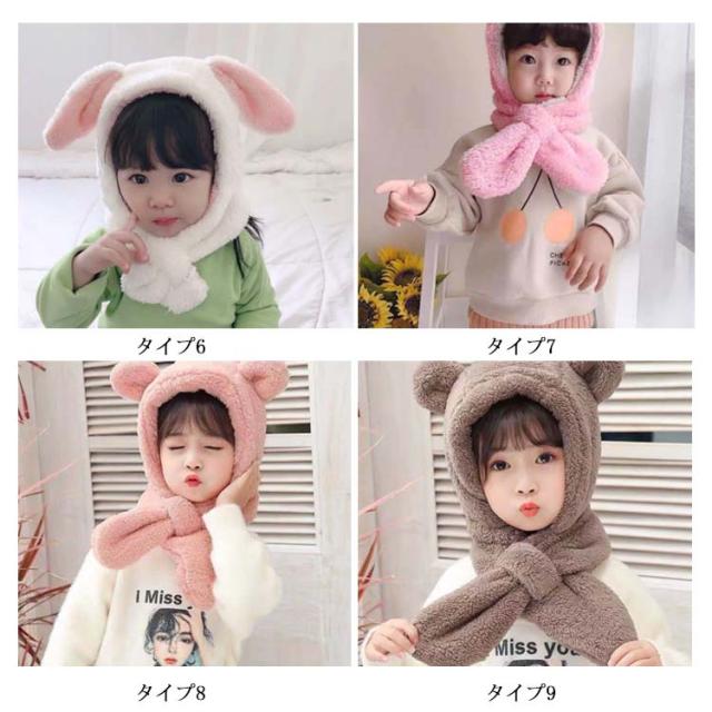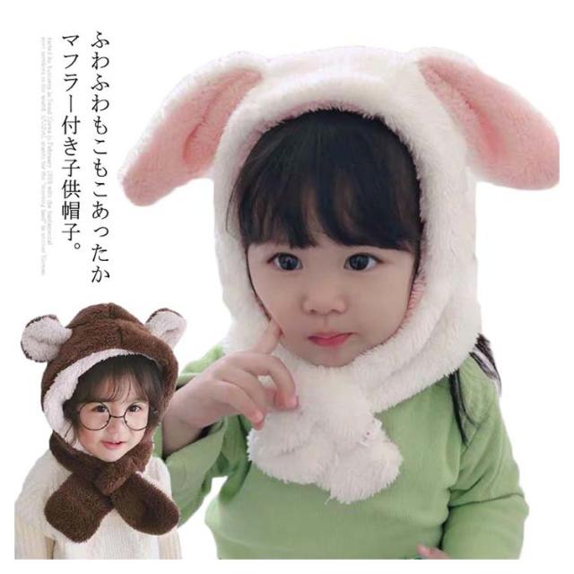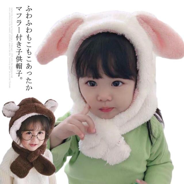 ベビー キッズ 帽子 マフラー 一体型 うさ耳 熊耳付 動物 ふわふわ 女の子 男の子 子供用 秋冬 防寒 ボア ネックウォーマー付き スヌード 小学生 幼稚園
