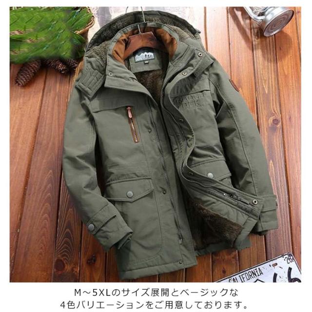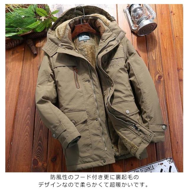 中綿コート メンズ ミリタリー ブルゾン アウター フード付き 裏ボア 冬服 プルオーバー 保温 防寒 寒さ対策 体型カバー カジュアル