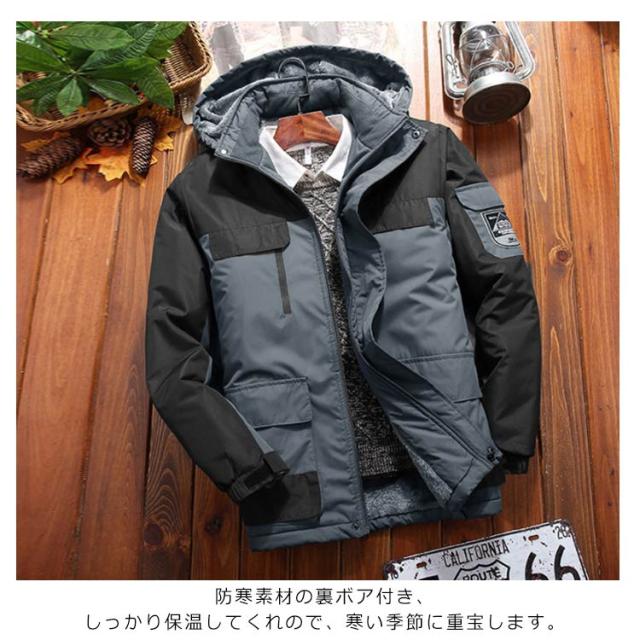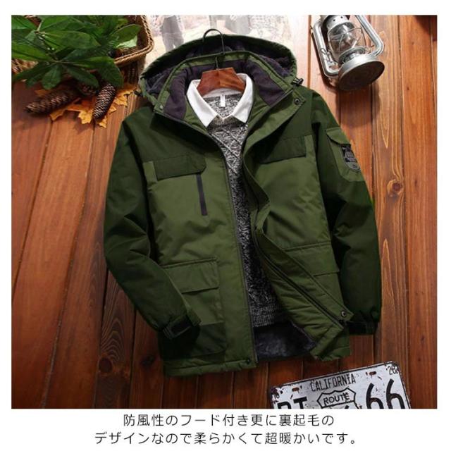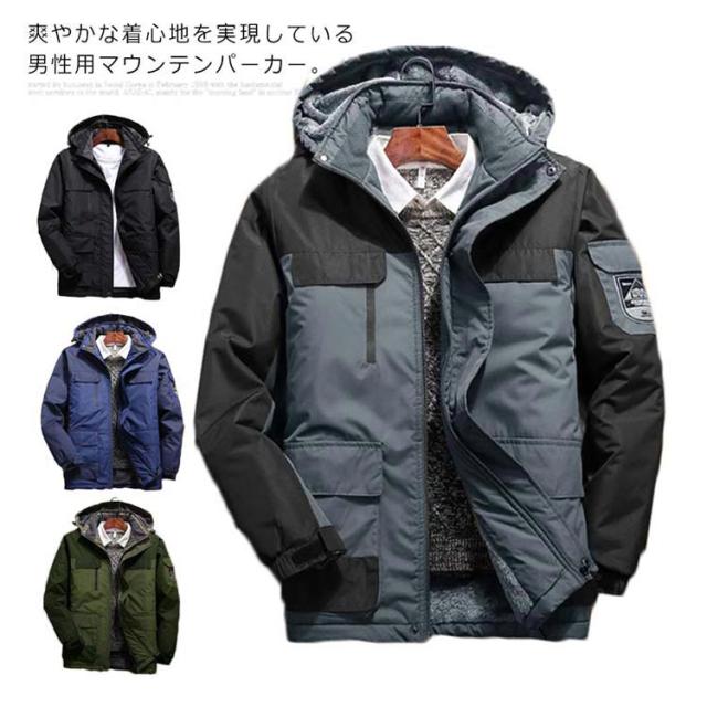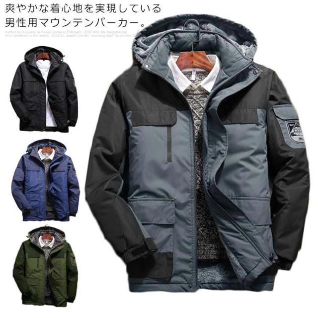 マウンテンパーカー メンズ 裏起毛 中綿ジャケット アウター アウトドア 防風 防水 防寒 フード付き 大きいサイズ カジュアル 秋冬物 プルオーバー