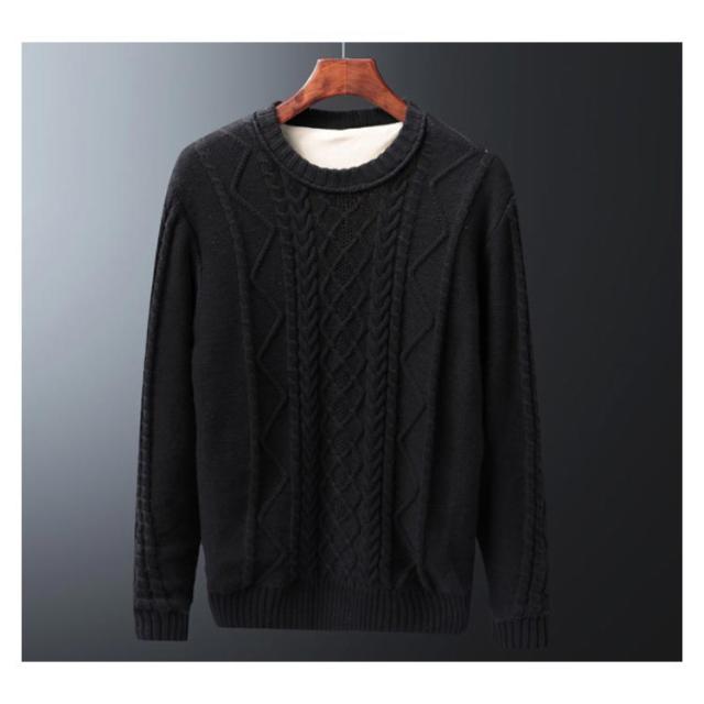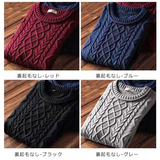 ニットセーター メンズ ニットソー クルーネック トップス 裏起毛 あったか ケーブル編み 防寒 冬服 保温 プルオーバー ゆったり カジュアル 厚手 寒さ対策