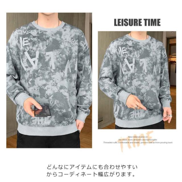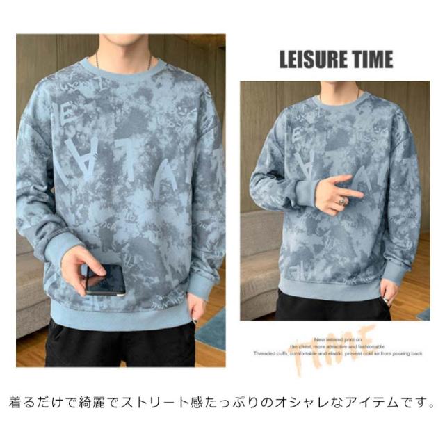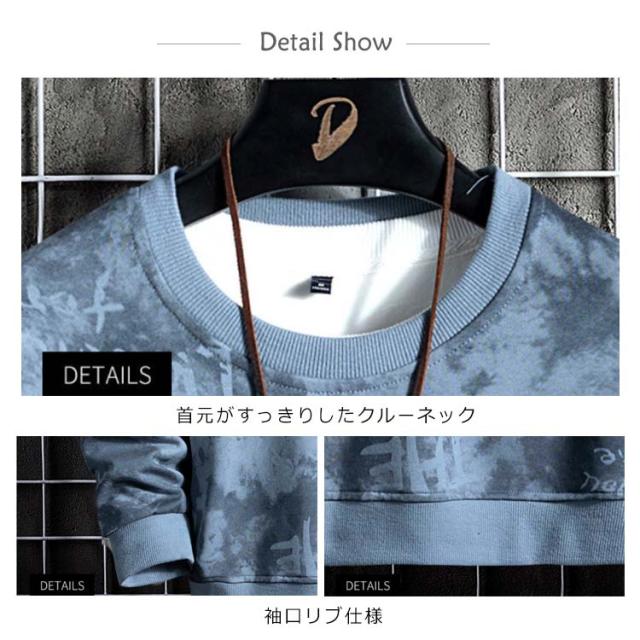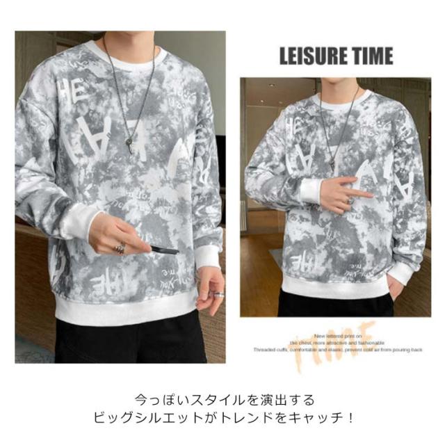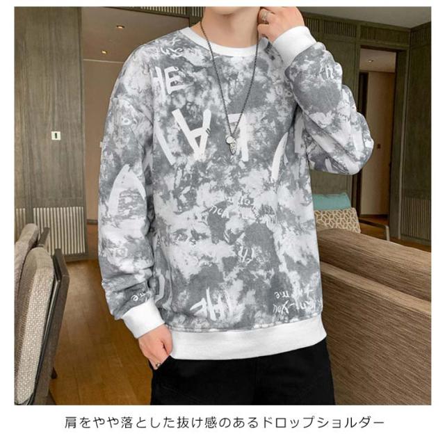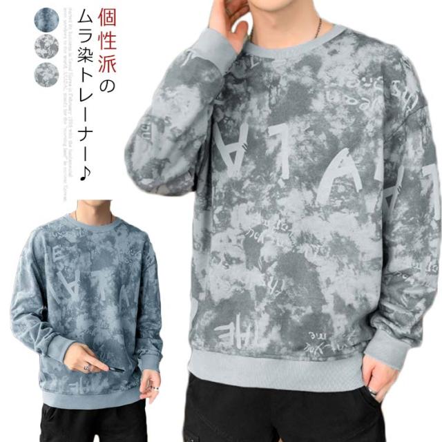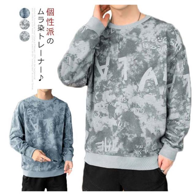 全3色6サイズ トレーナー オーバーサイズ メンズ ムラ染 スウェット トップス 長袖 ゆったり パーカー アメカジ ストリート系 原宿系 おしゃれ 春秋