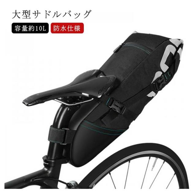 自転車 サドルバッグ 大型 防水仕様 バイクパッキング用 大型サドルバッグ 10L 自転車 バッグ シートバッグ 大容量 荷物 収納 反射加工 リアバッグ シートポストバッグ 簡単取り付け 小物入れ サイクリング ロードバイク マウンテンバイク クロスバイク
