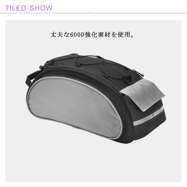 | 商品名:自転車リアバッグ 素材:ポリエステル ナイロン そのほか サイズ:42*16*18CM 容量:13L 重量:約398g 特徴:見た目以上の大容量で使い勝手ばつぐん。日常の必需品、自転車用ギア、サイクリングアクセサリーなど日用品の理想的な収納することができます。 | |