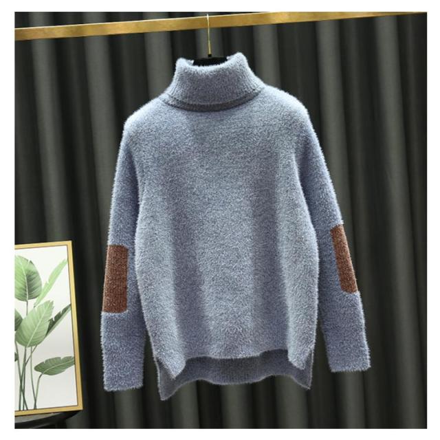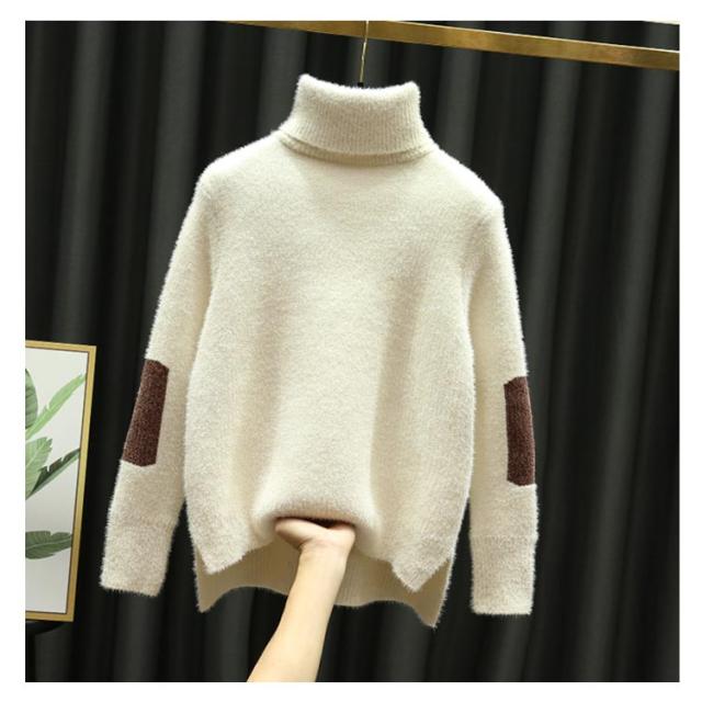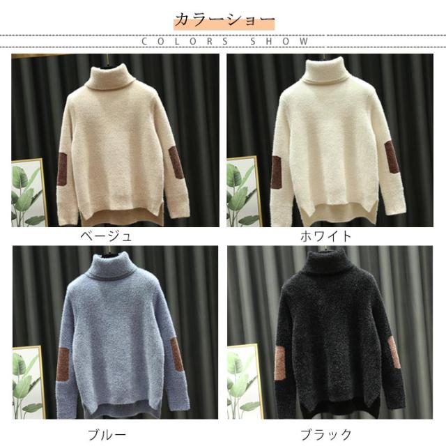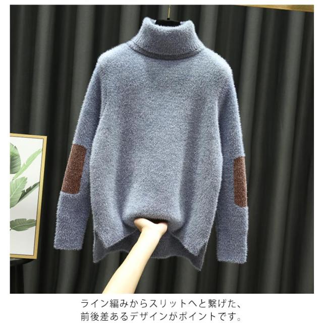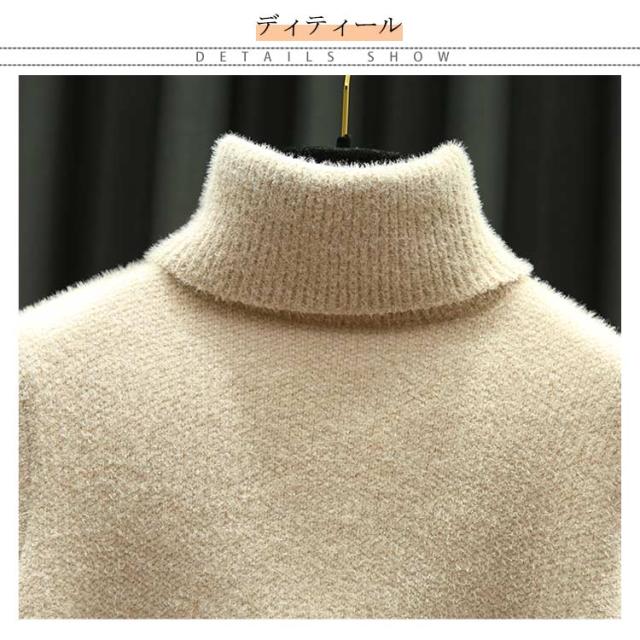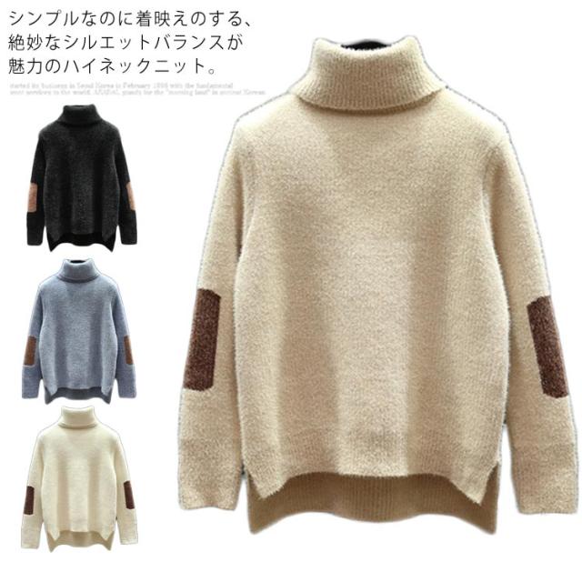 前後差あるのシルエット!ハイネックニット ニット セーター レディース タートルニット オフタートルネック 長袖 暖かい サイドスリット 防寒 秋冬 冬