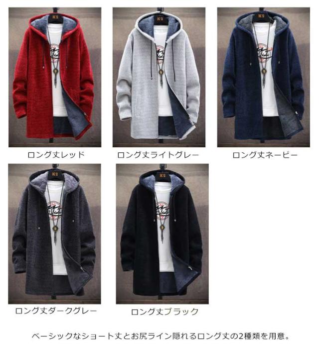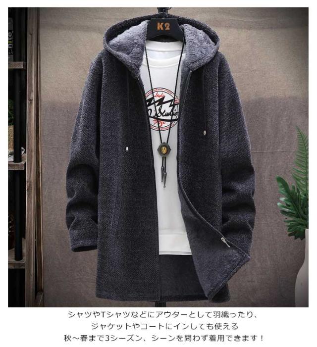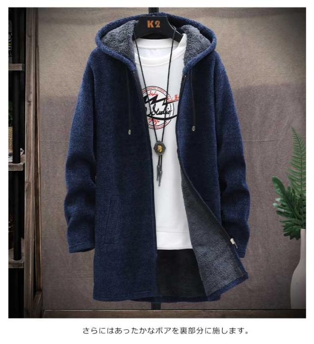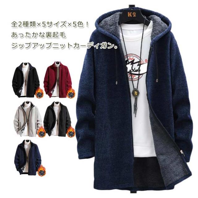 カーディガン メンズ 裏起毛カーディガン ロング丈 ショート丈 コーディガン フード付き 裏ボア アウター ジャケット ニットジャケット ボア 暖かい カジュアル 秋冬 冬