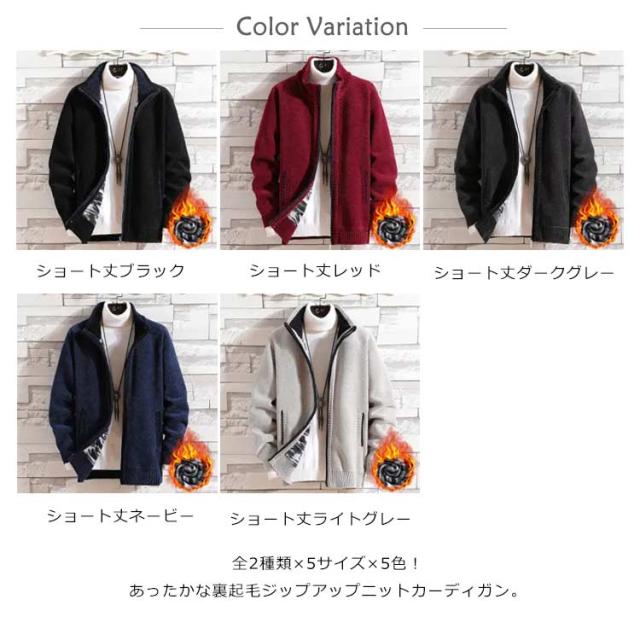 | 全2種類×5サイズ×5色!あったかな裏起毛ジップアップニットカーディガン。 風合い豊かな質感のニット編みが大人の色気を演出できます! さらにはあったかなボアを裏部分に施します。 なショート丈とお尻ライン隠れるロング丈の2種類を用意。 しっかりとした厚手ニット素材が崩れず長時間使える。 シャツやTシャツなどにアウターとして羽織ったり、ジャケットやコートにインしても使える秋〜春まで3シーズン、シーンを問わず着用できます! | |