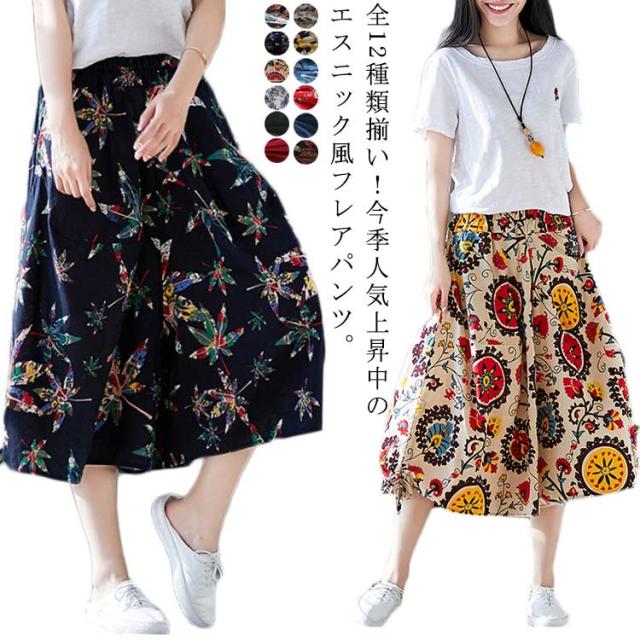 | 全12種類揃い!今季人気上昇中のエスニック風フレアパンツ。 さらりと軽やか風合いの綿麻素材で仕立て、ストレスフリーな穿き心地です。 おしゃれな総柄で周りと差をつけます。 ウエストゴムタイプで楽々。 全体的にはルーズなシルエットで体型カバー効果も抜群です。 足首見せるクロップド丈で、サンダルもスニーカーとも好相性◎ | |
