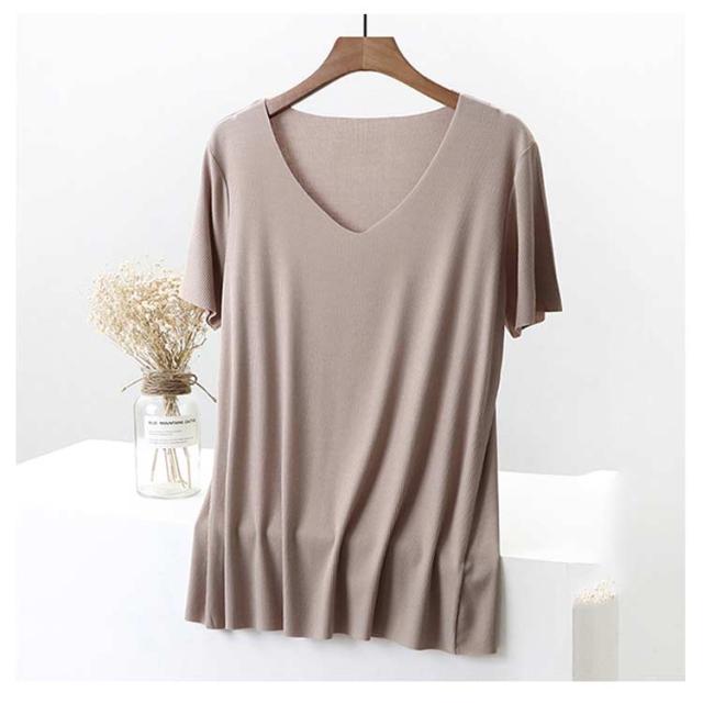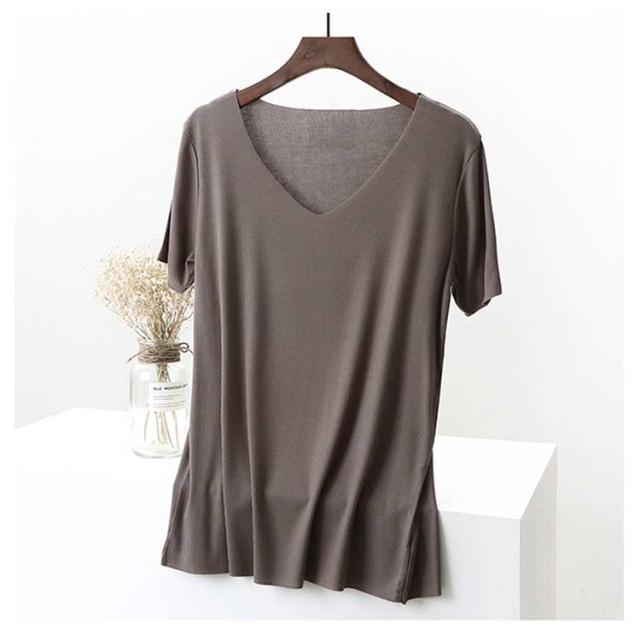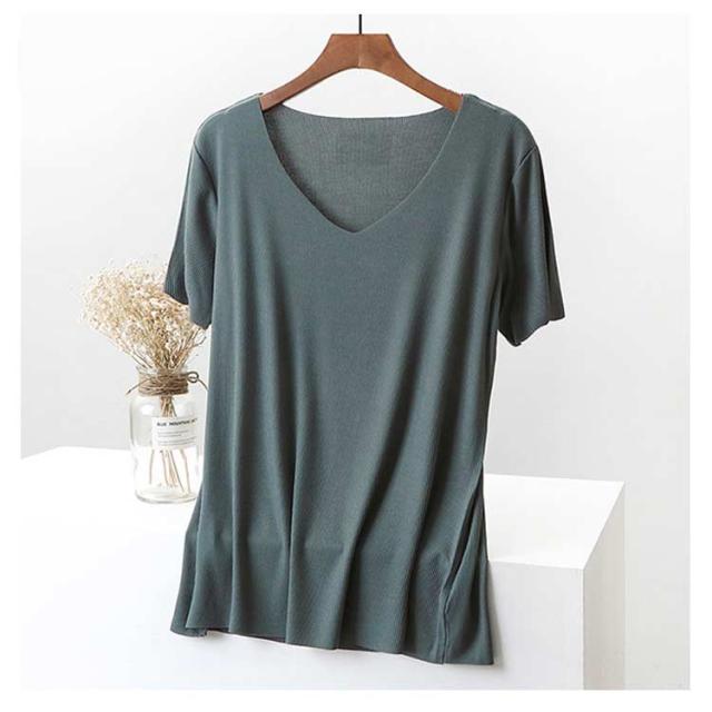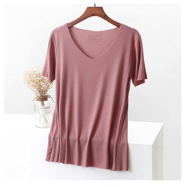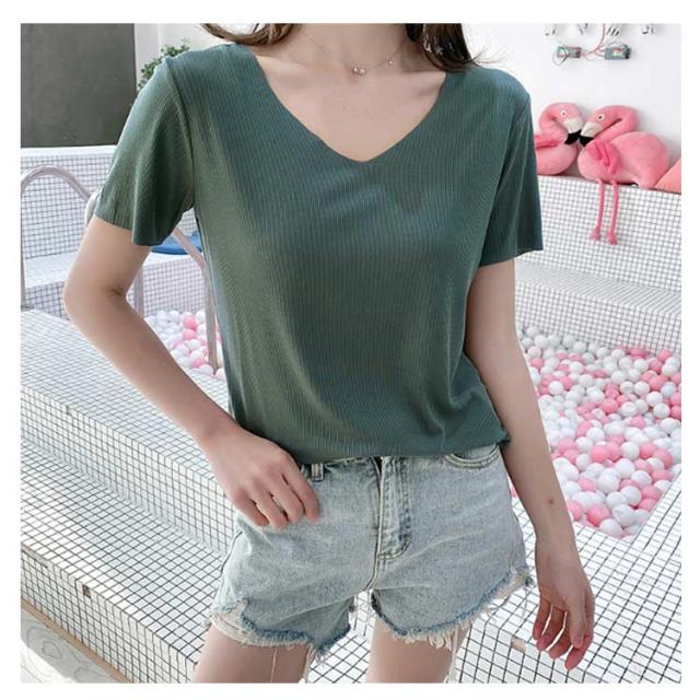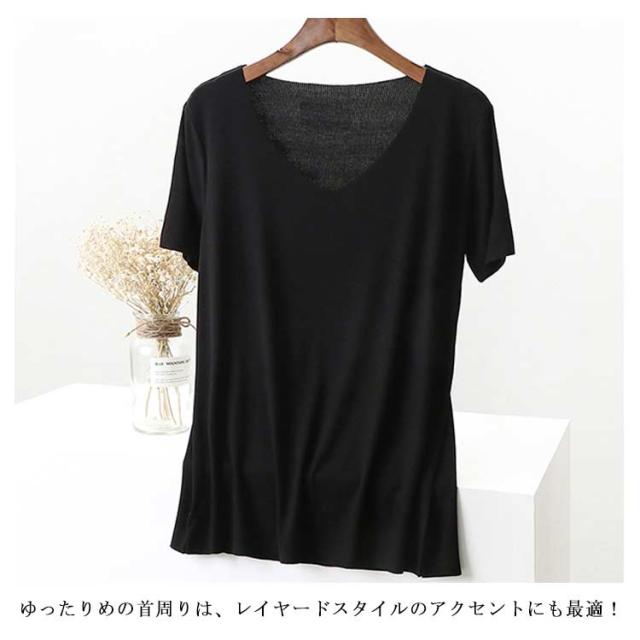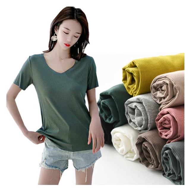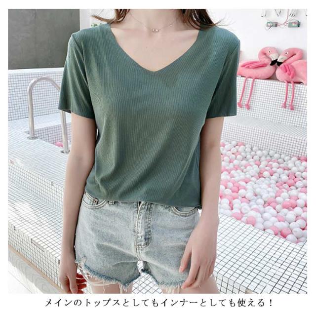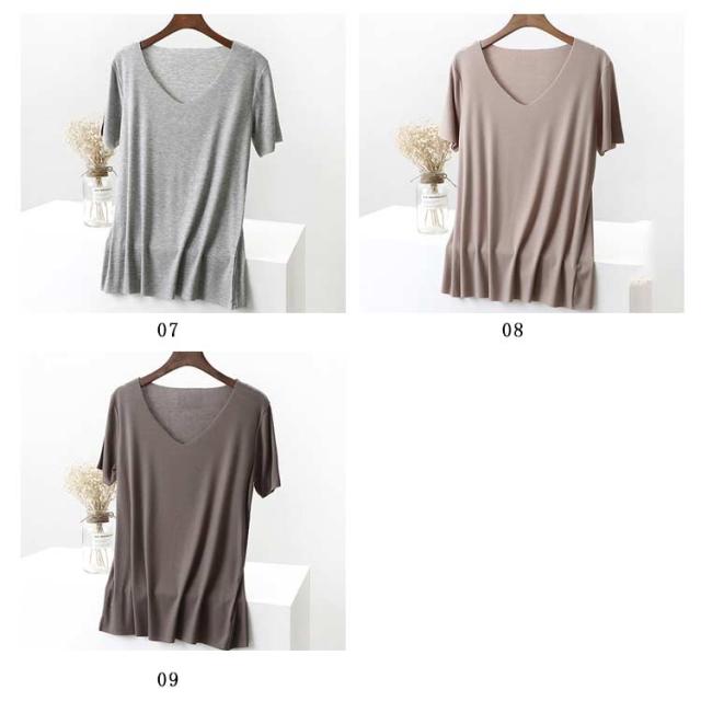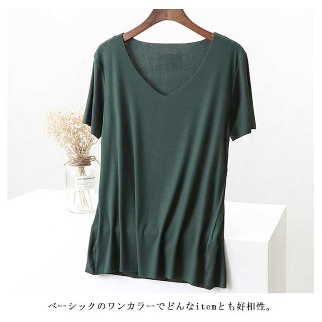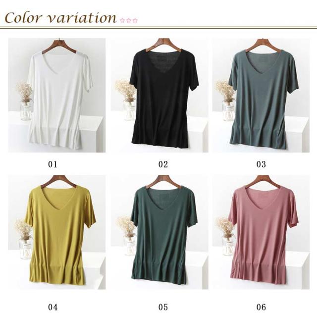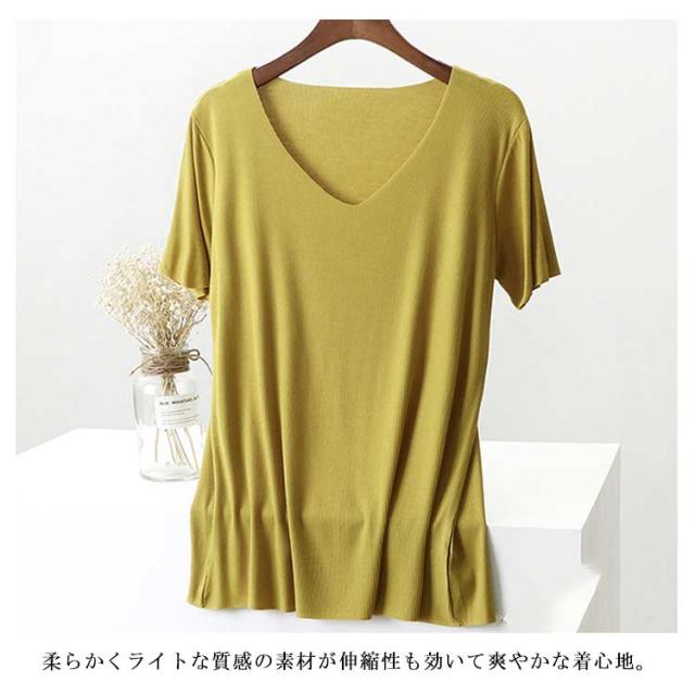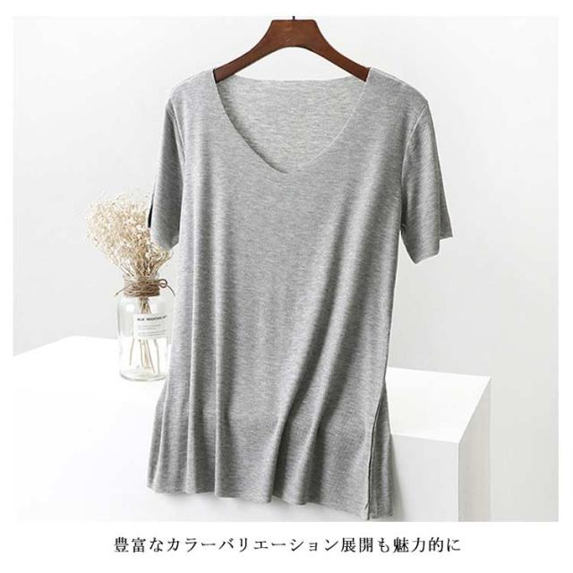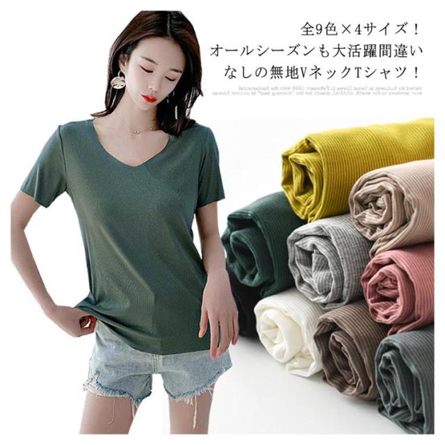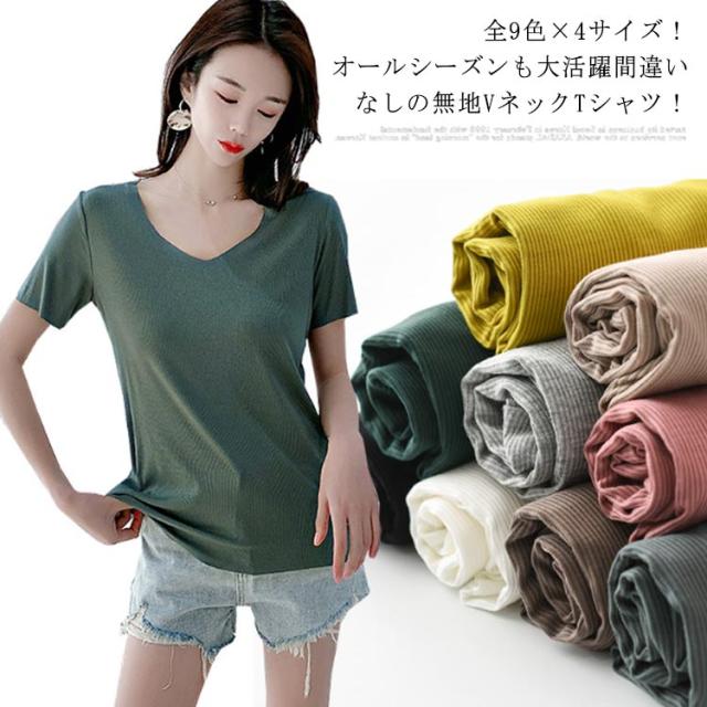 全9色×4サイズ!モーダルリブtシャツ レディース tシャツ 半袖tシャツ 無地 Vネック カットソー トップス 夏服 夏物 シンプル 伸縮性 柔らかい 大人 女性 大きサイズ